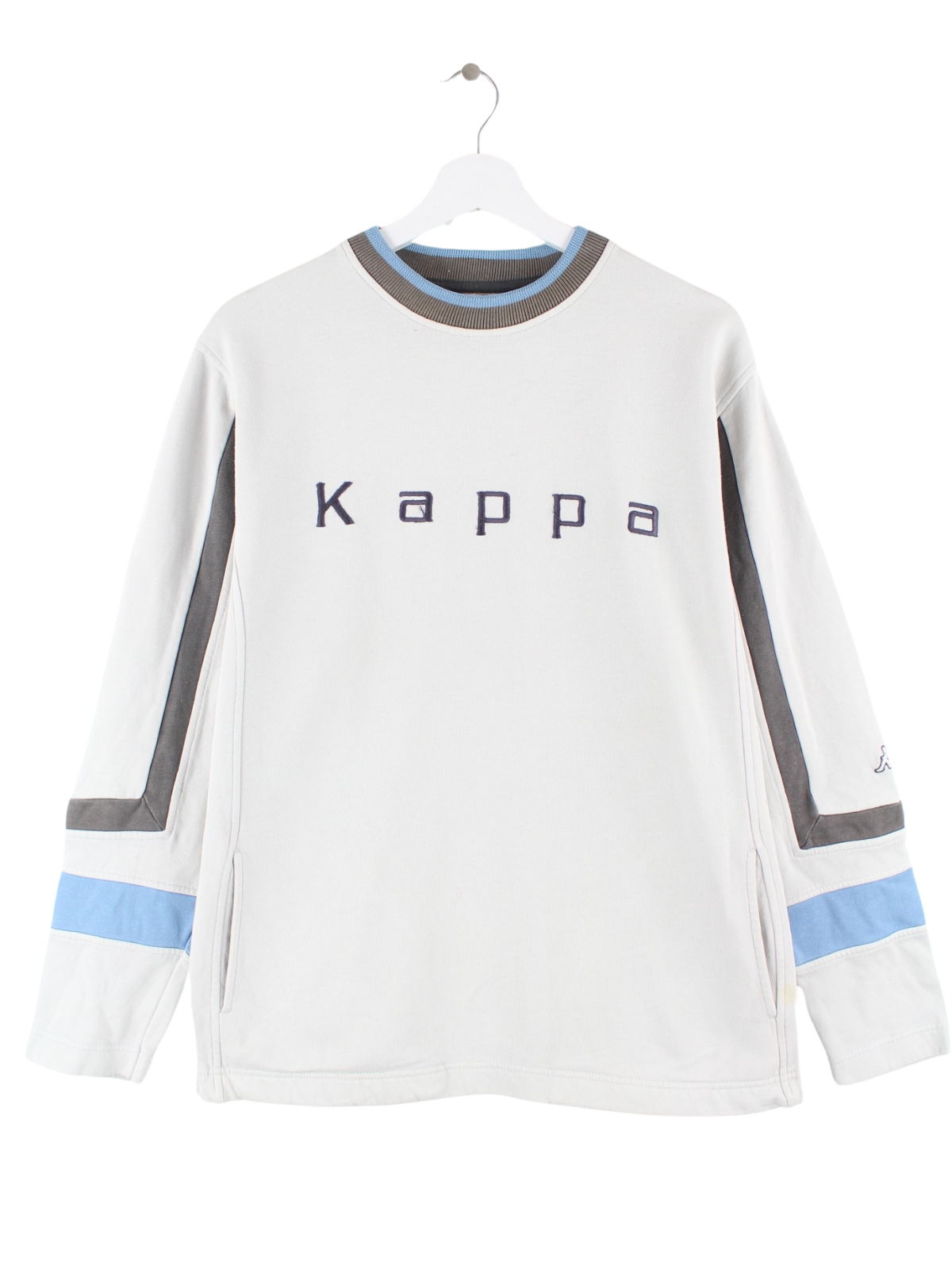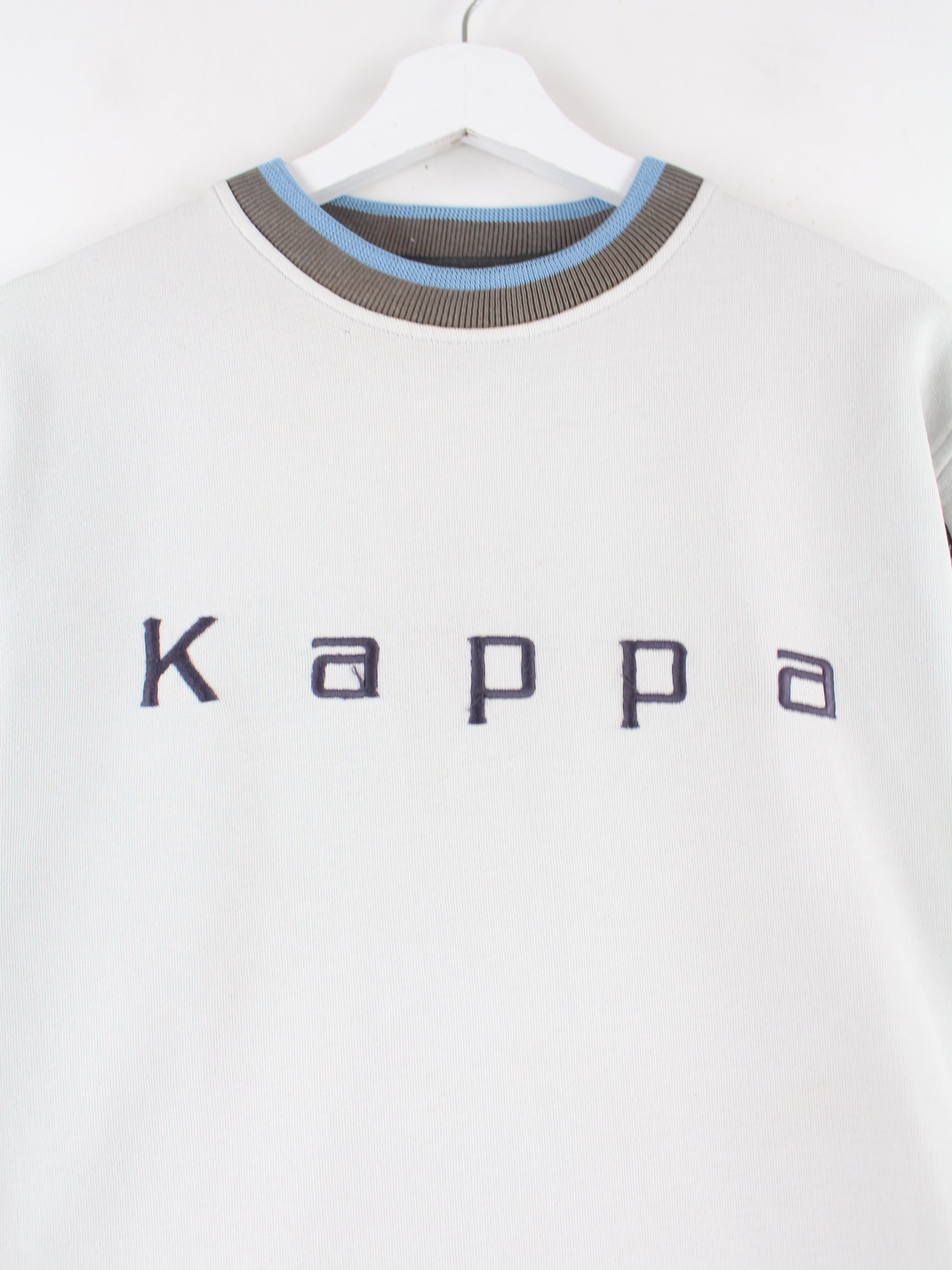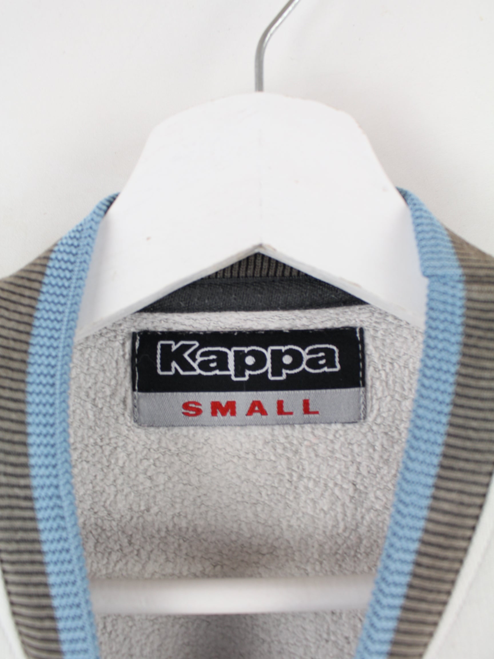 Sweater der Brand Kappa mit Stick in Größe S. Er ist aus einer Baumwollmischung gemacht und in Grau bei uns zu bekommen.