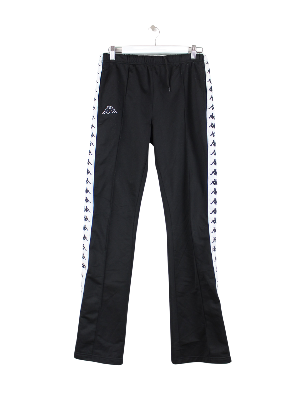 Schwarze Track Pants vom Brand Kappa in Größe S. Sie sind aus Synthetik gefertigt und in gutem Zustand bei uns zu bekommen.