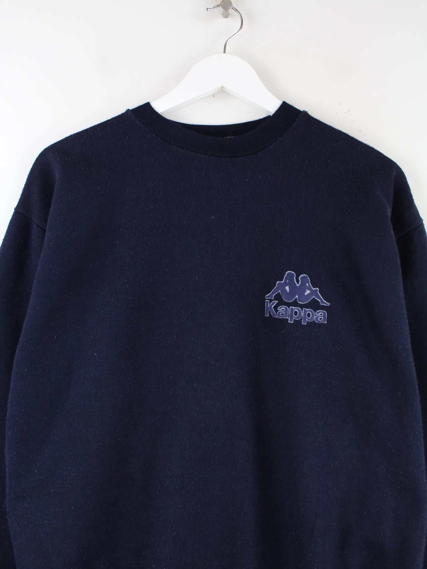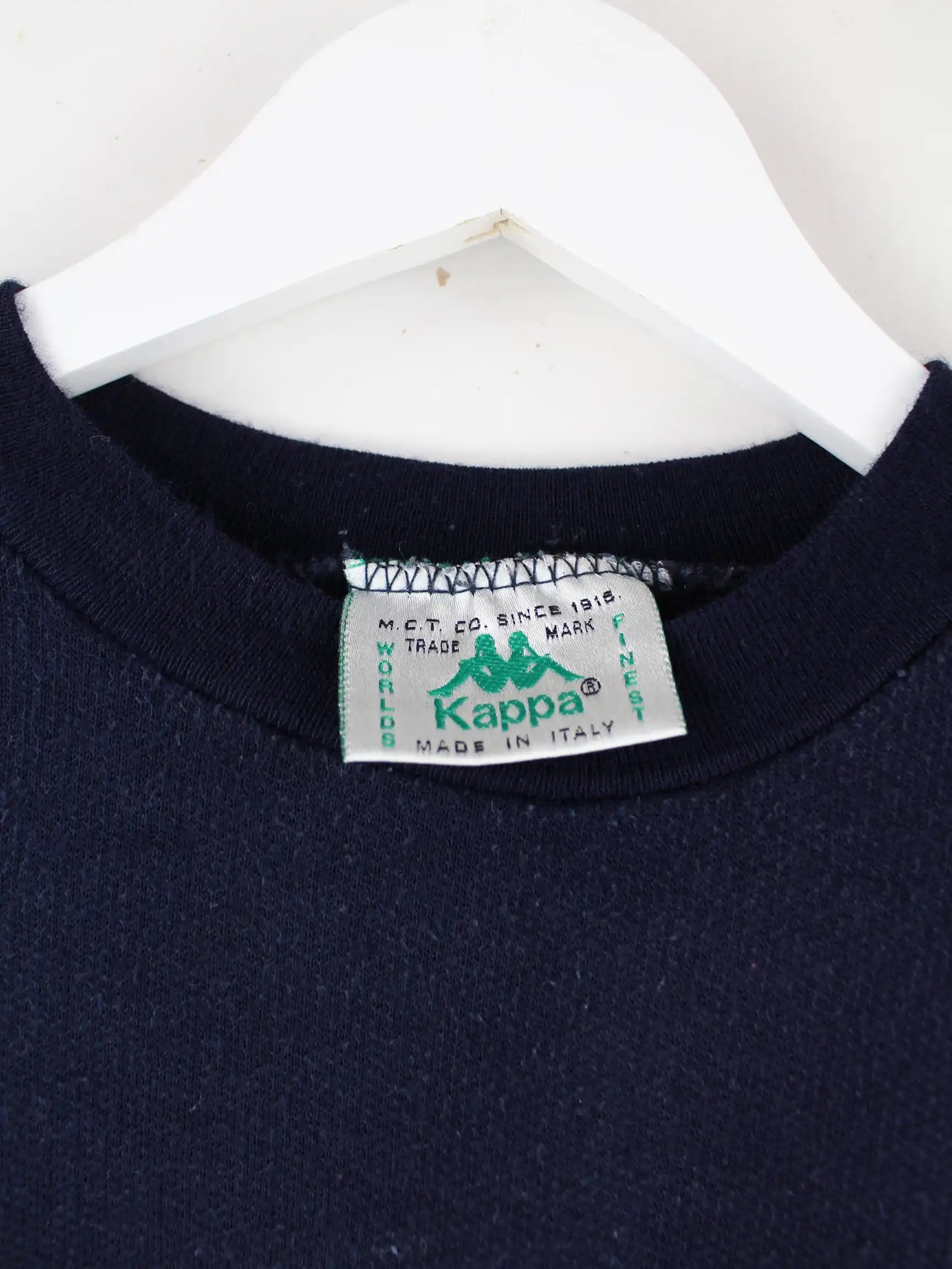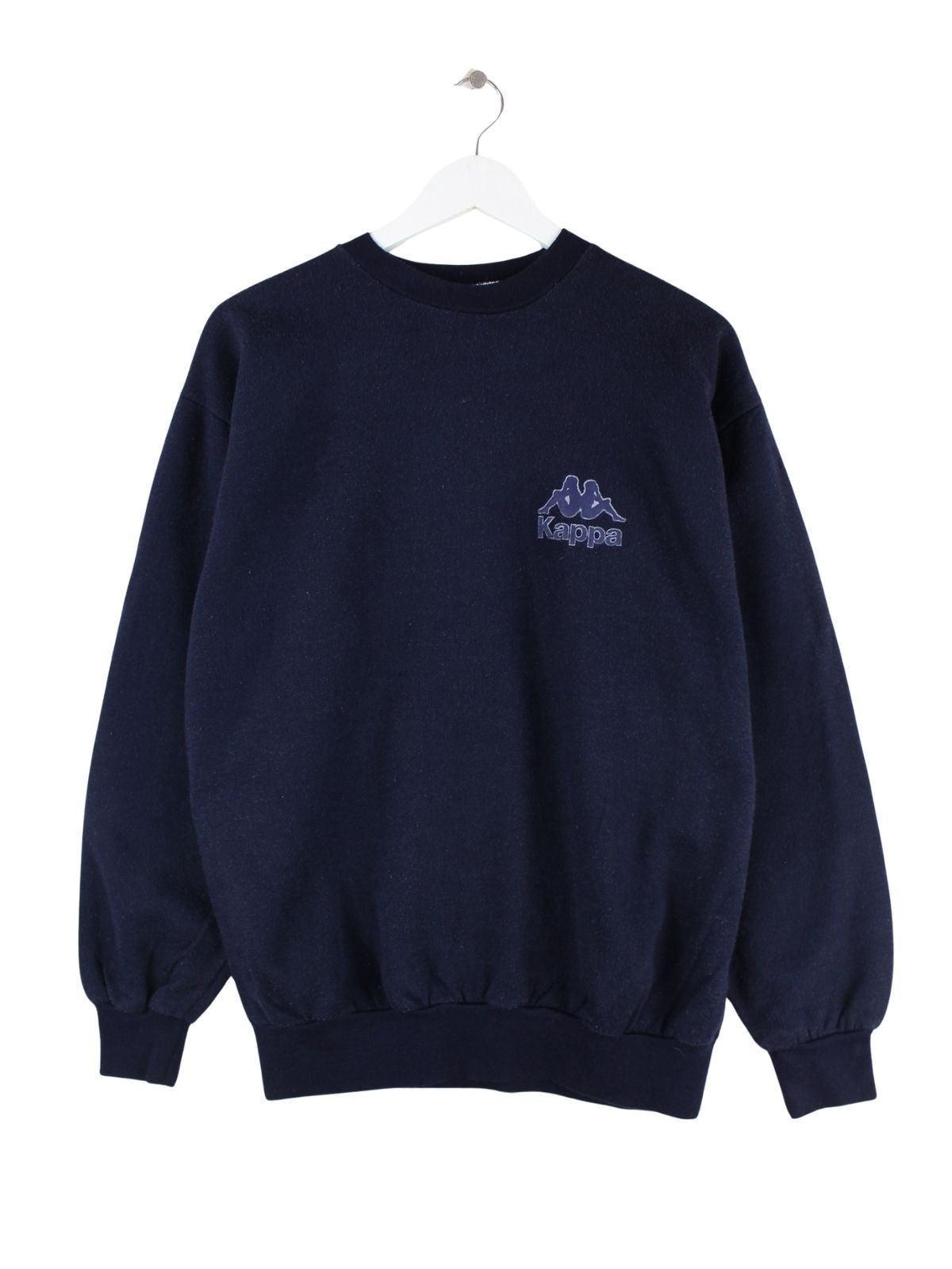 Sweater des Labels Kappa in Größe M aus den 80'ern. Er ist aus einer Baumwollmischung hergestellt und in Blau in Stock.