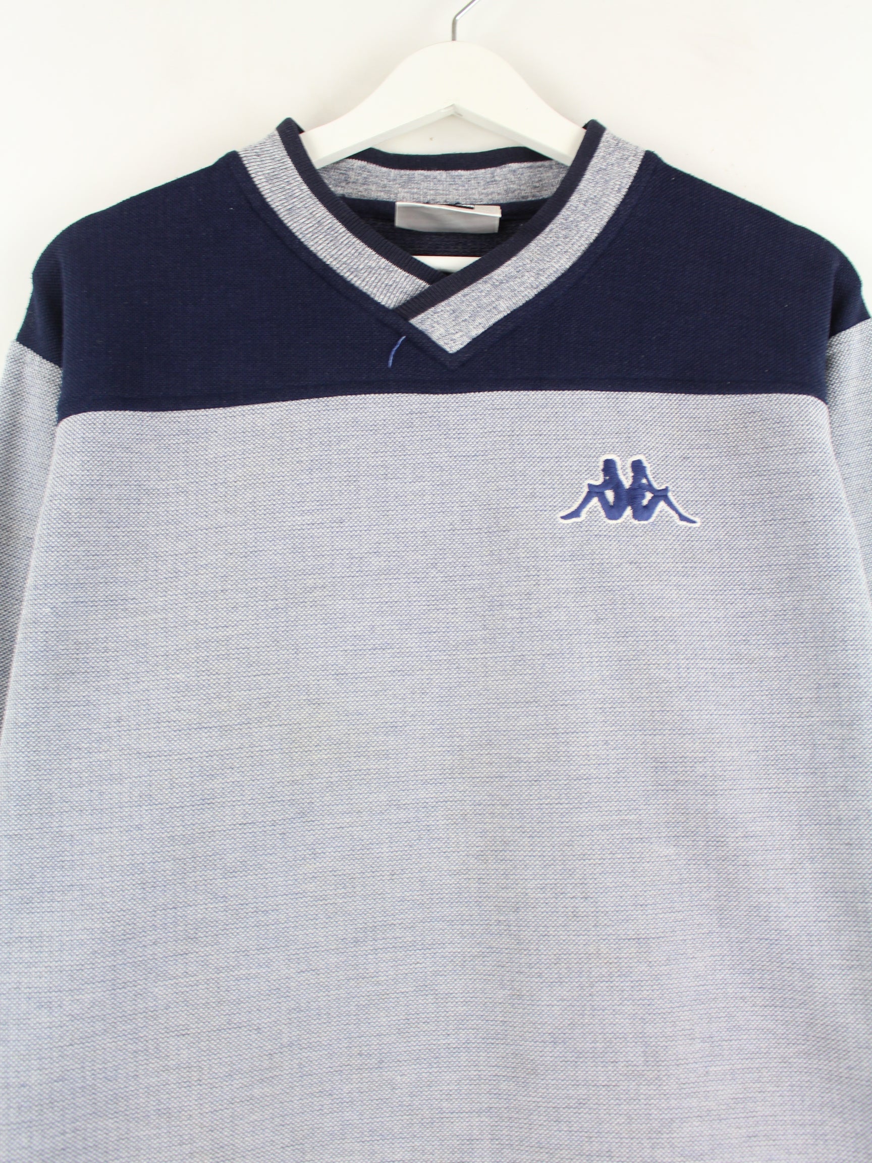 Kappa 90s Vintage Embroidered V-Neck Sweater Grau M