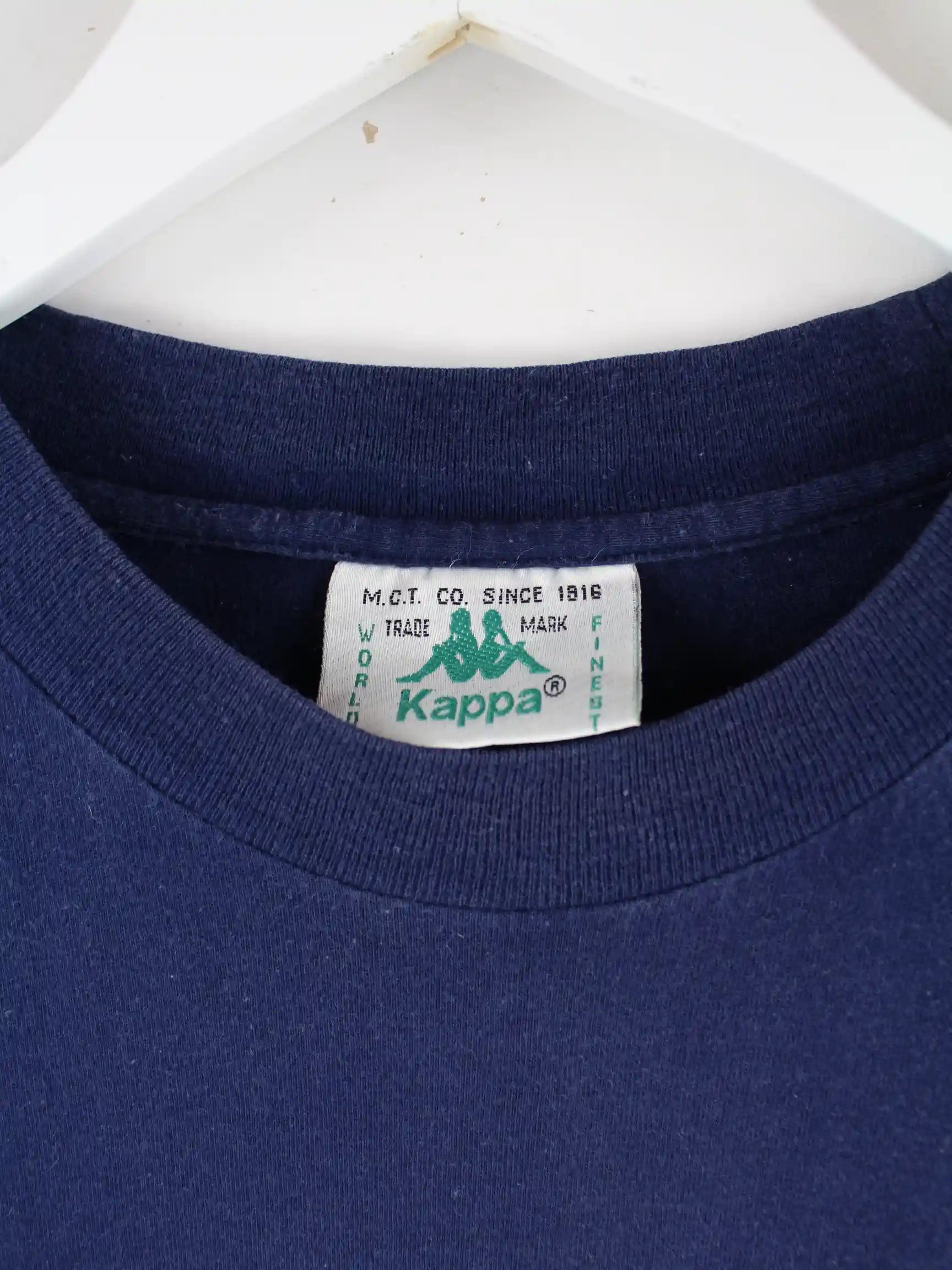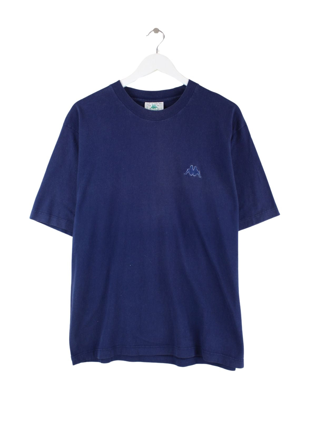 Blaues T-Shirt von Kappa aus den 90'ern in Größe L. Es ist aus Baumwolle produziert und in gutem Zustand im Bestand.