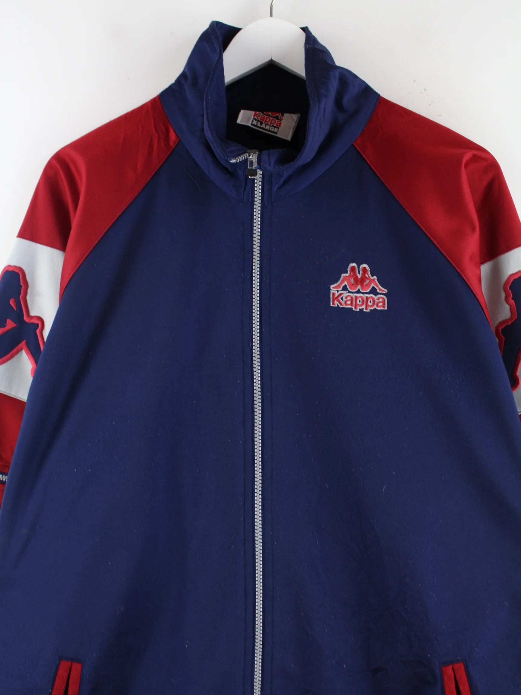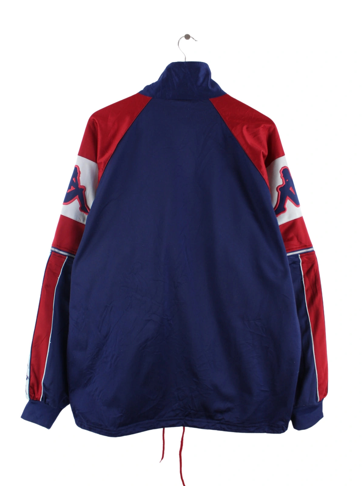 Blaue Trainingsjacke der Brand Kappa aus den 90'ern in Größe XL. Sie ist aus Synthetik produziert und in gutem Zustand bei uns zu bekommen.