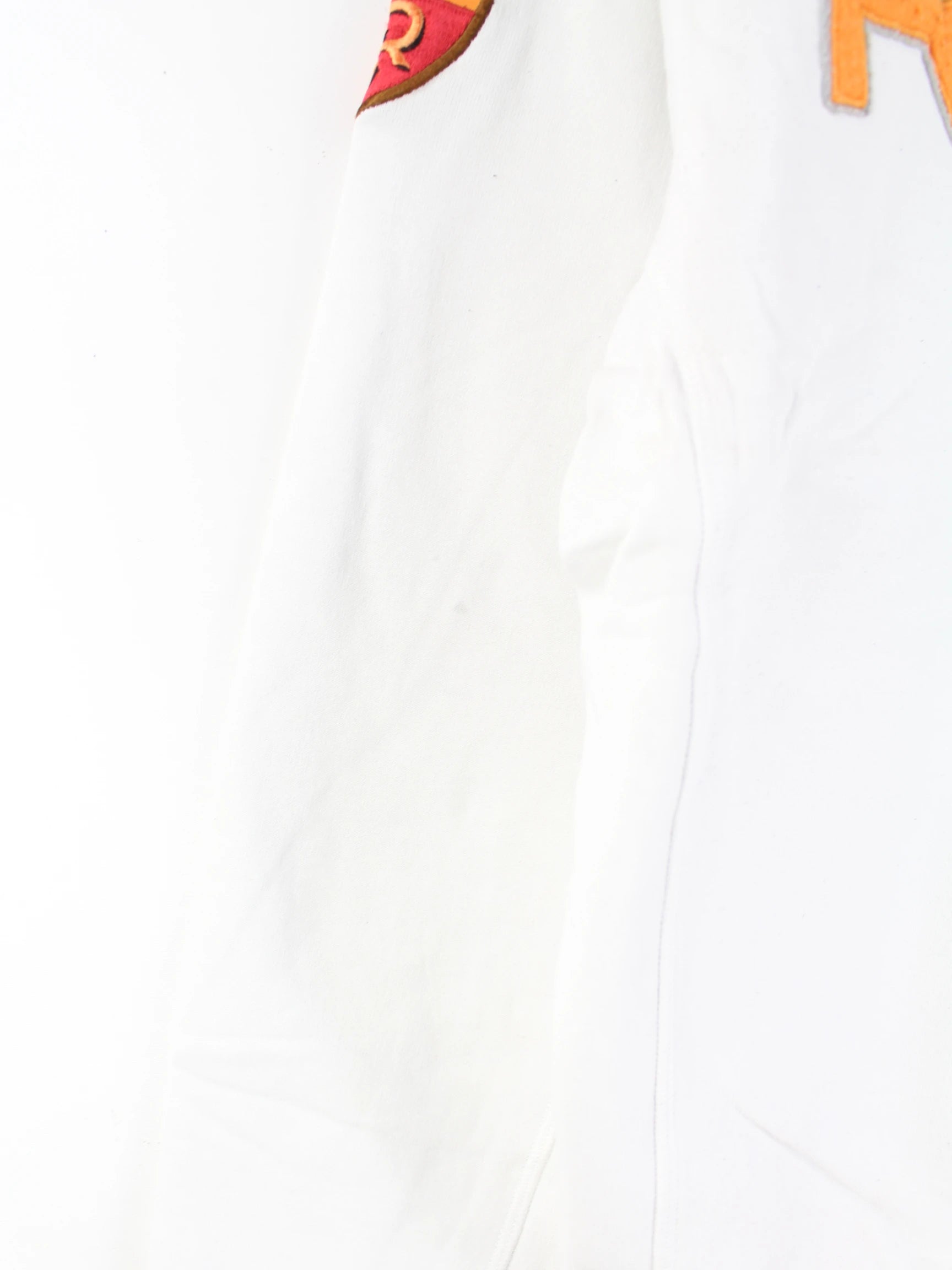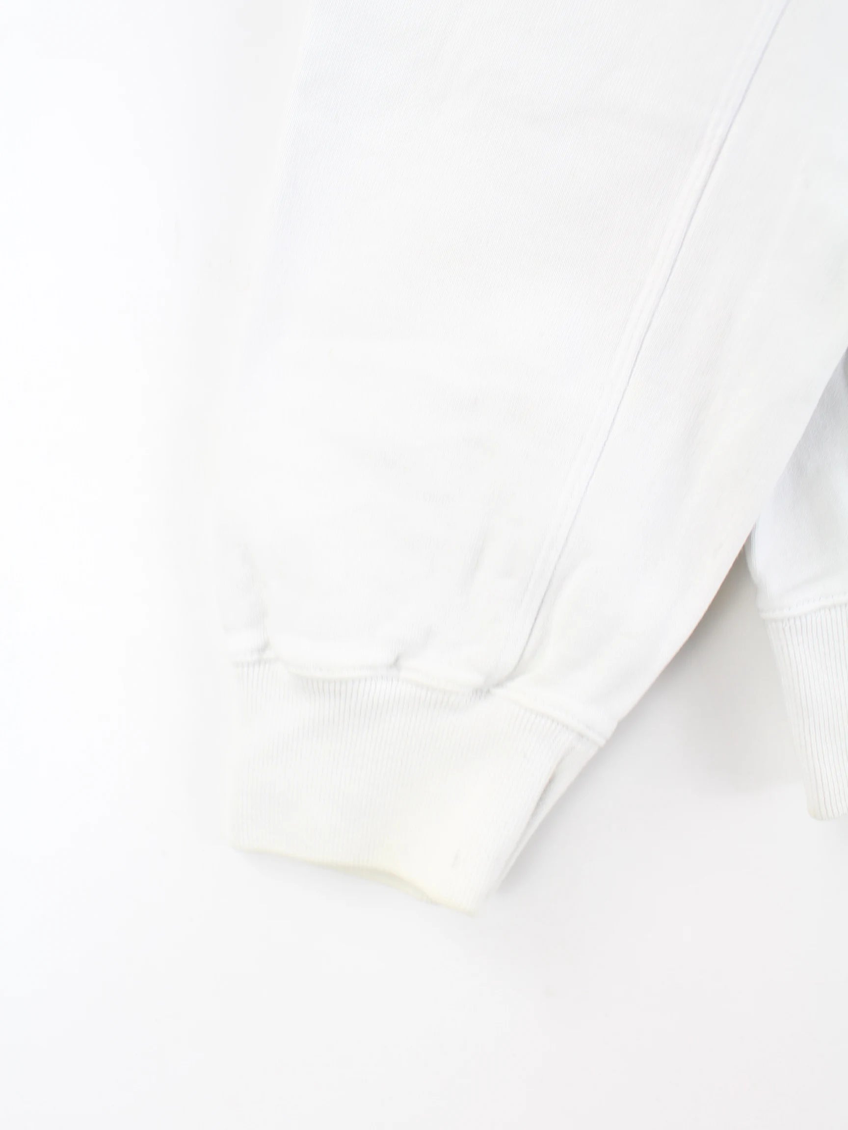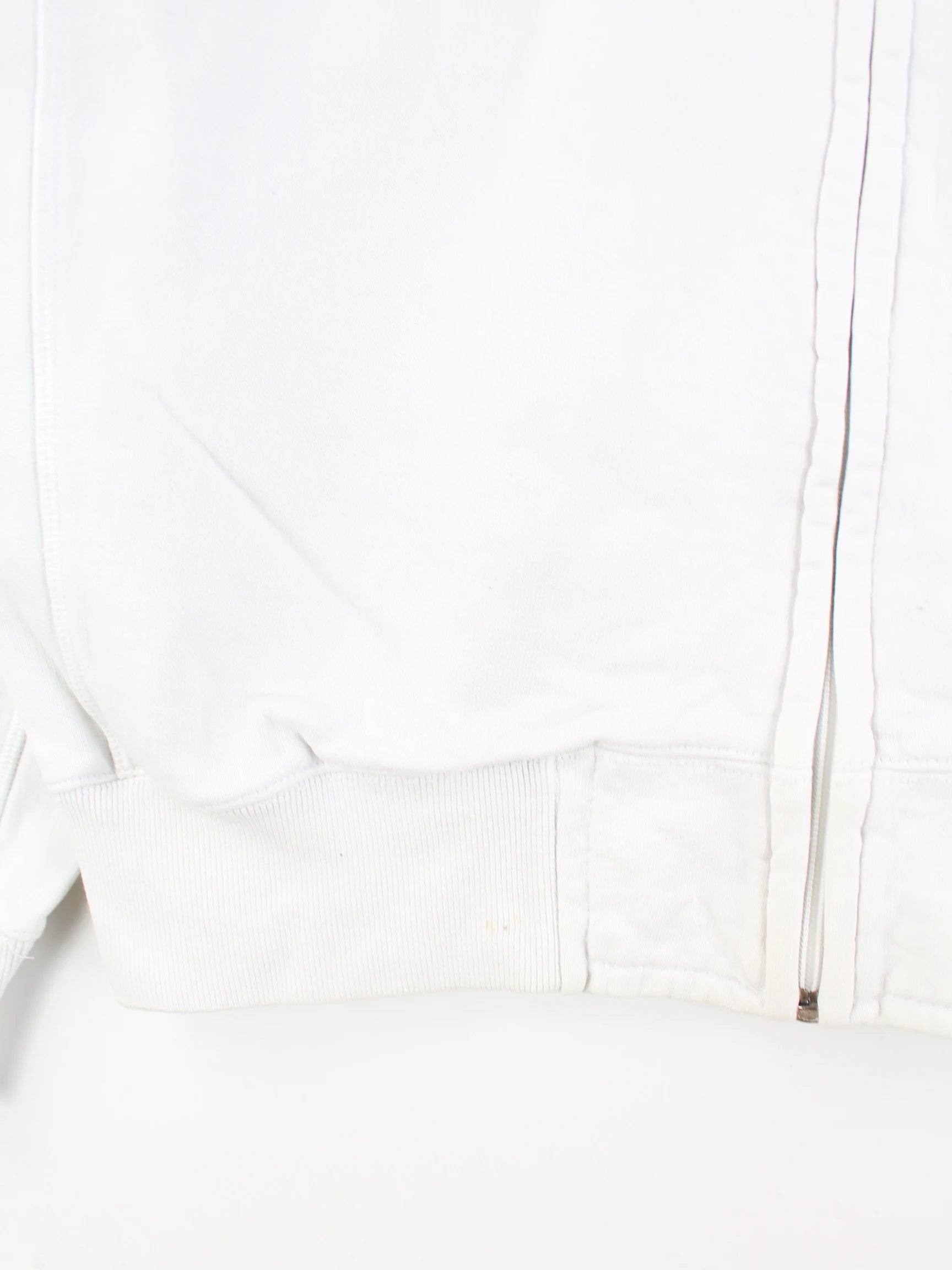 Weiße Sweatjacke aus dem Hause Kappa in Größe L. Sie ist aus einer Baumwollmischung gemacht. Den Zustand würden wir als 'In Ordnung' bezeichnen (vergl. Bilder).