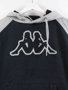 Hoodie von Kappa in Größe M. Er ist aus einer Baumwollmischung produziert und in Schwarz im Bestand. Mit tollem Logo Print.