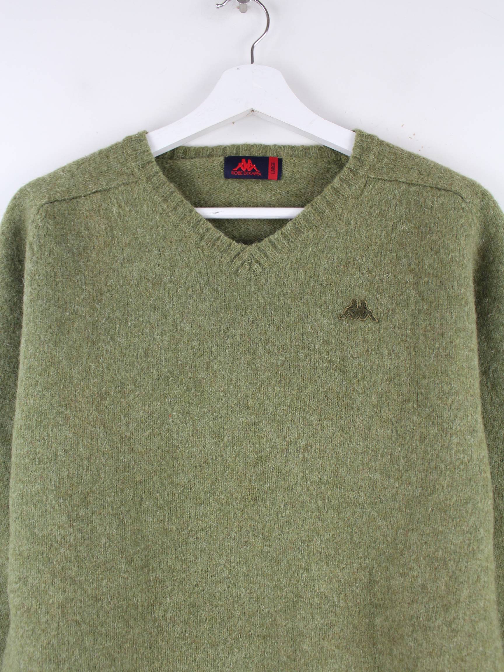 Grüner Pullover der Brand Kappa aus den 90'ern in Größe S. Er ist aus Baumwolle und in sehr gutem Zustand auf Lager.