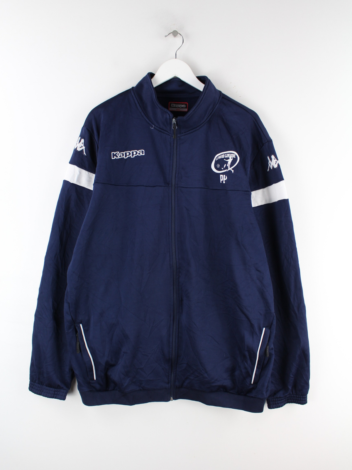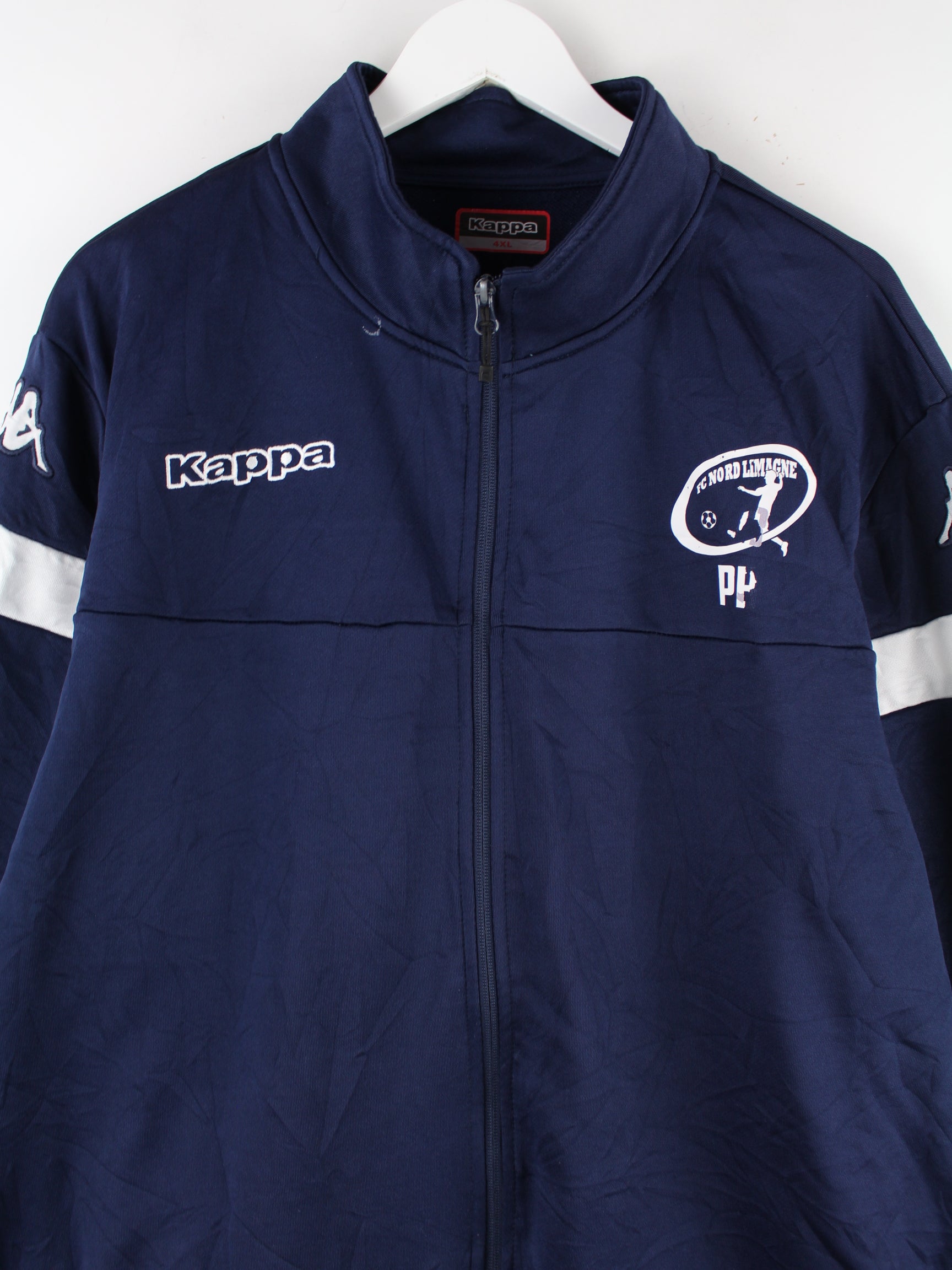Trainingsjacke vom Label Kappa in Größe 4XL. Sie ist aus Synthetik angefertigt und in Blau im Bestand. Mit chiquem Print.
