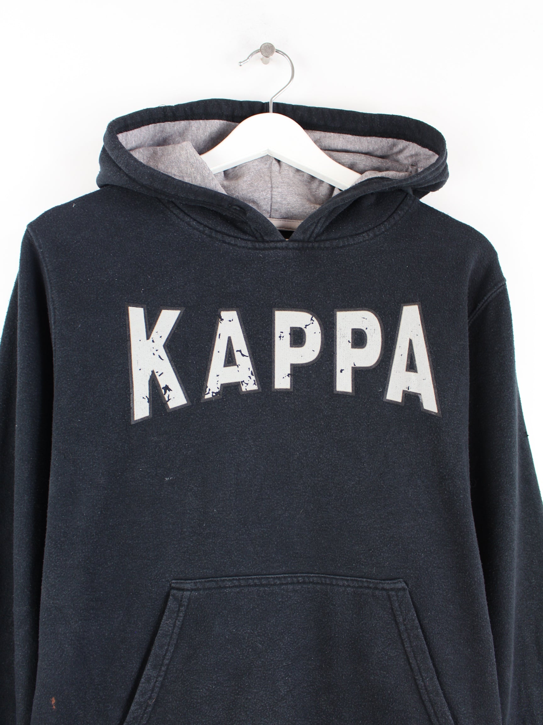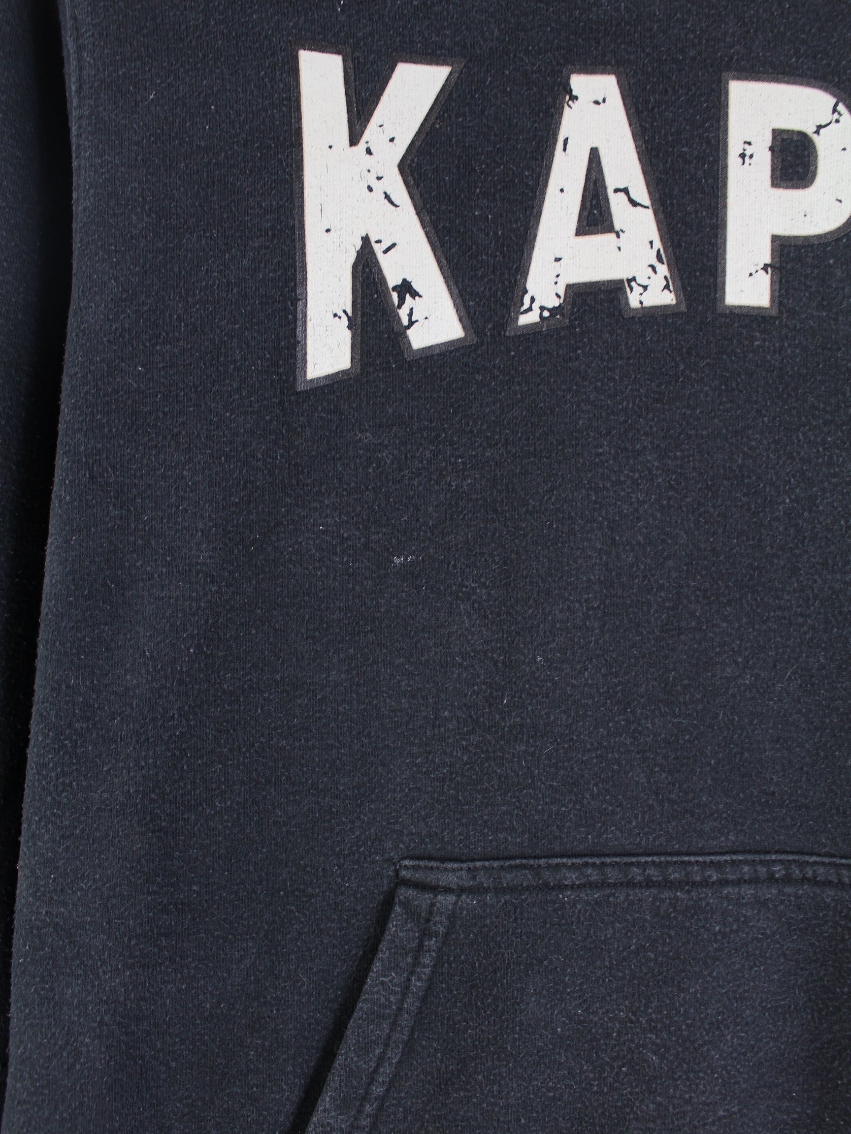 Hoodie von Kappa in Größe M. Er ist aus einer Baumwollmischung produziert und in Schwarz bei uns zu bekommen. Mit chiquem Kappa Print.