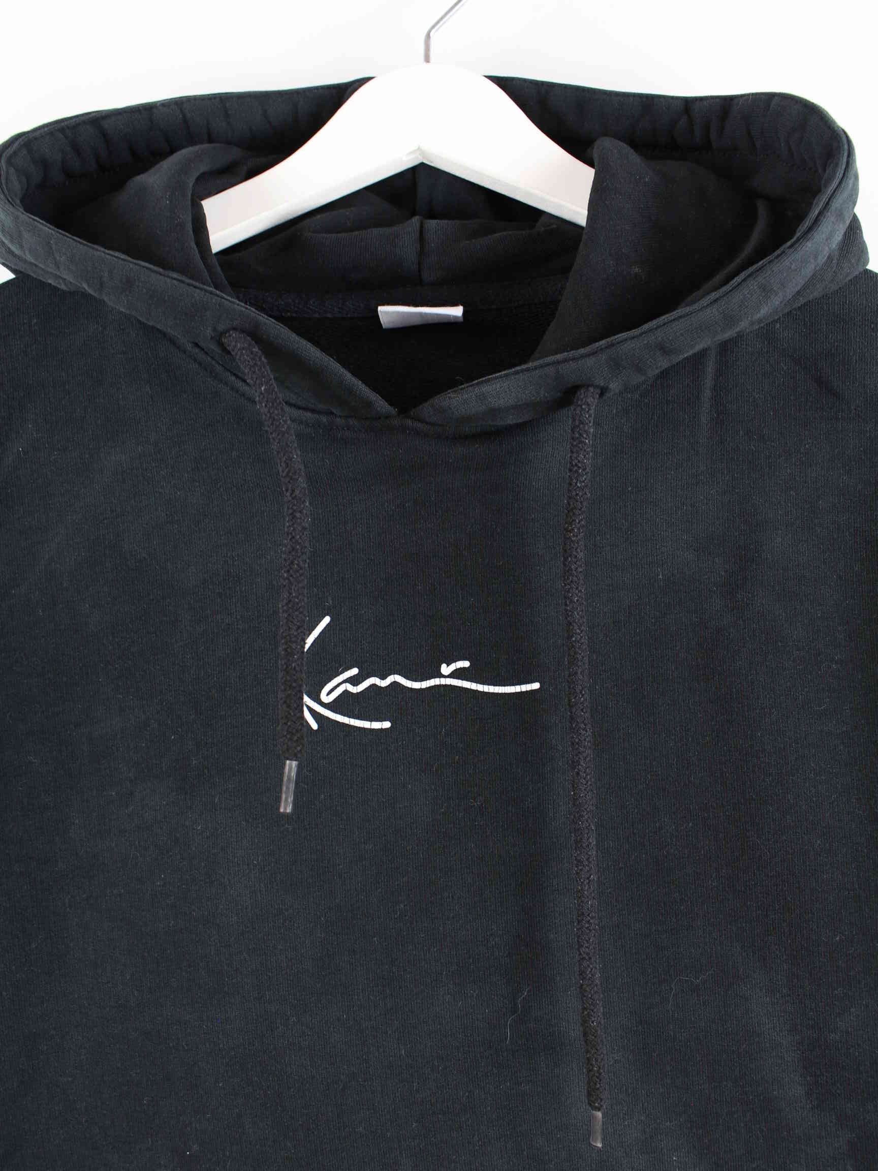 Hoodie von Karl Kani in Größe M. Er ist aus einer Baumwollmischung angefertigt und in Schwarz bei uns vorrätig. Mit schönem Print.