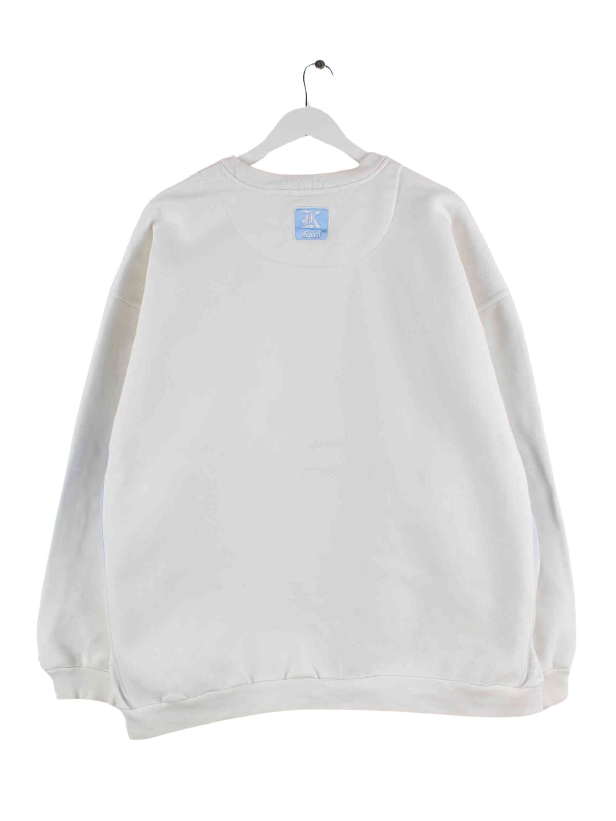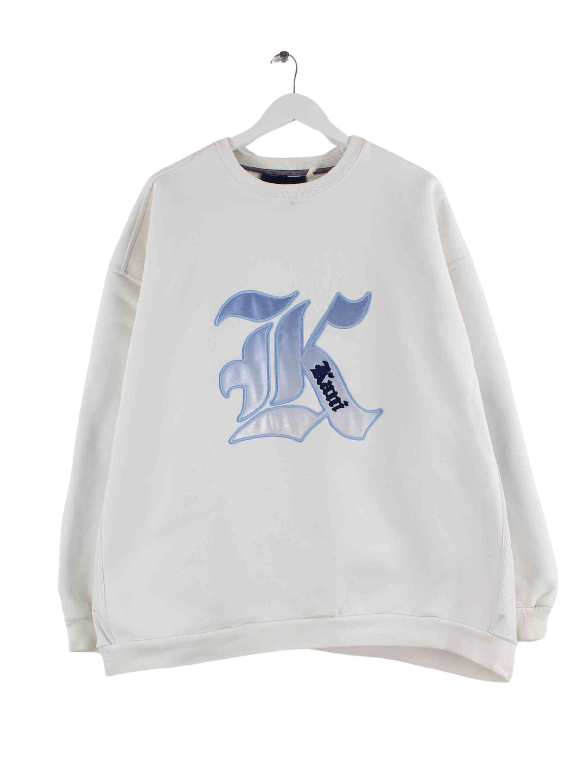 Weißer Sweater mit Stick aus dem Hause Karl Kani aus Anfang der 2000'er in Größe XXL. Er ist aus einer Baumwollmischung und in gutem Zustand vorrätig.
