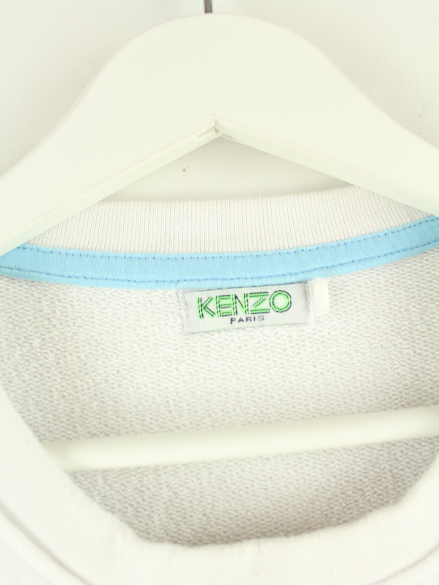 Sweater der Brand Kenzo mit gesticktem Logo in Größe M aus den 90'ern. Er ist aus einer Baumwollmischung produziert und in Weiß auf Lager.