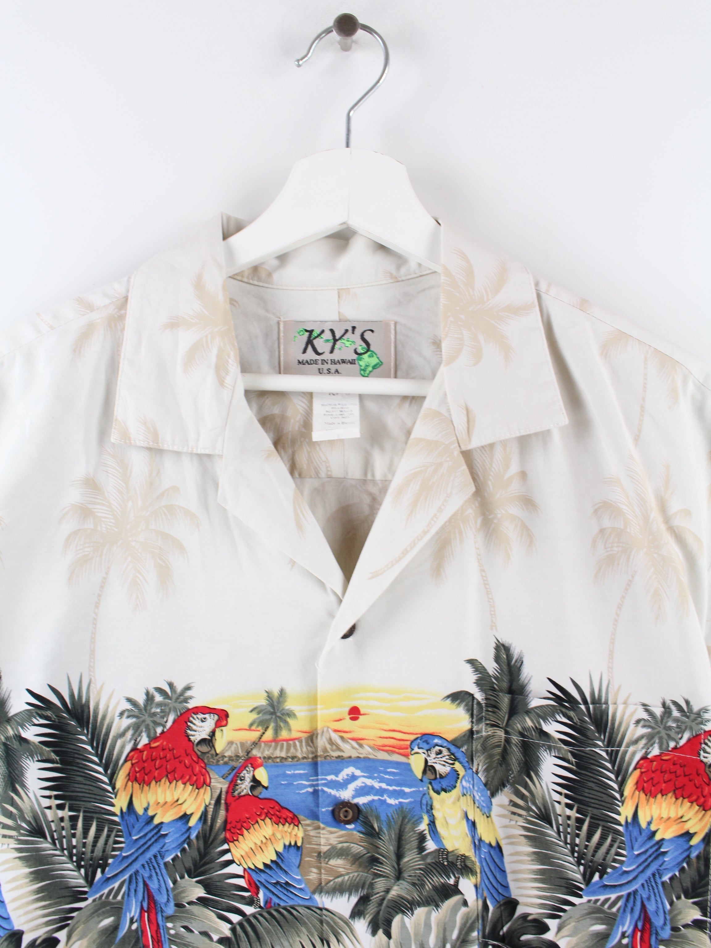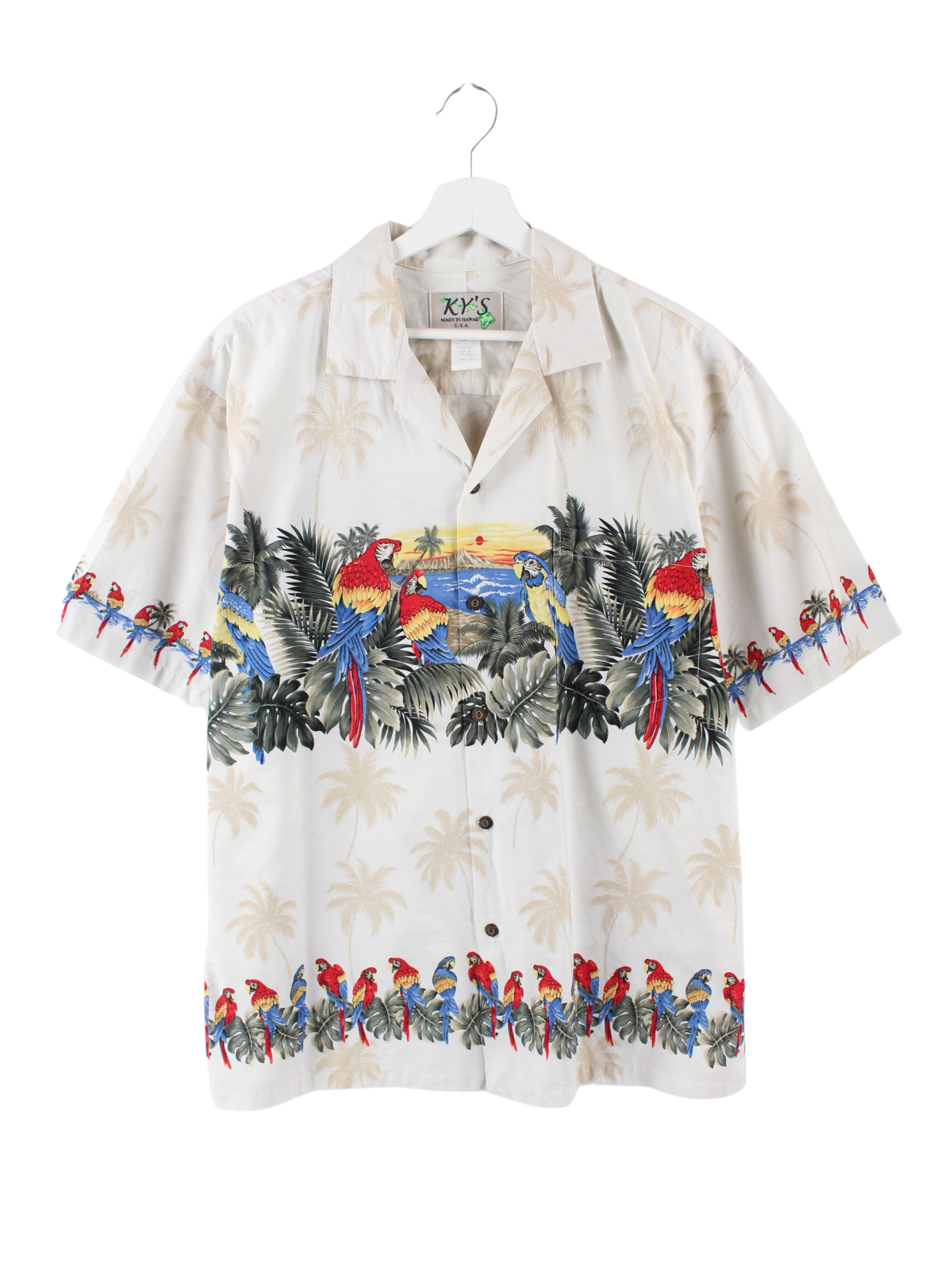Vintage Hawaii Hemd mit Papageien Motiv.