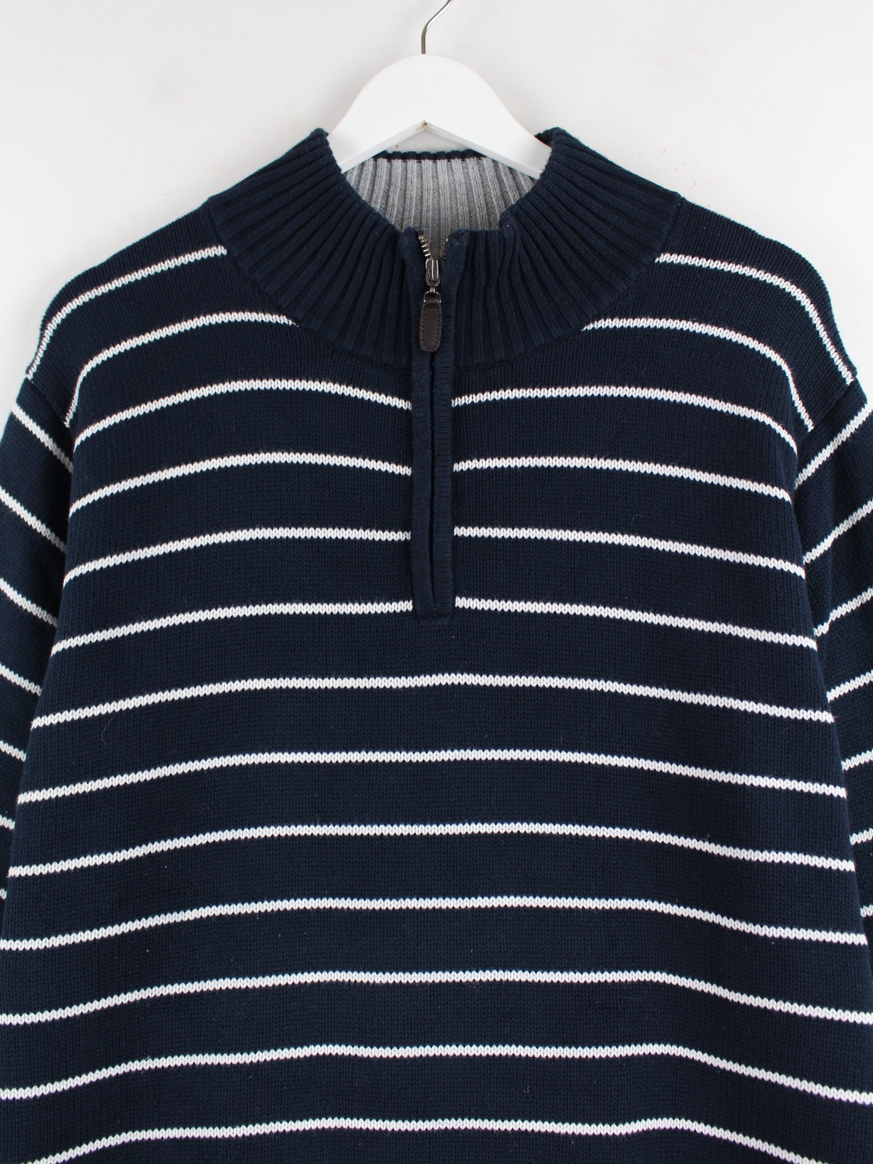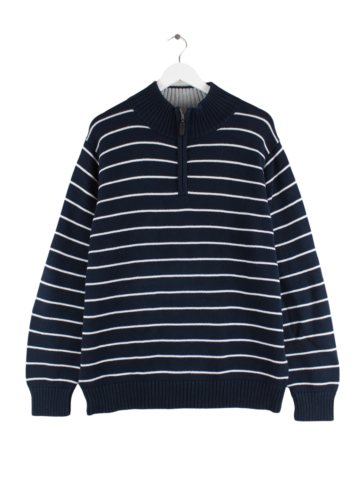 Blauer Pullover mit kurzem Reißverschluß des Labels L.L. Bean in Größe L. Er ist aus Baumwolle gemacht und in gutem Zustand in Stock.