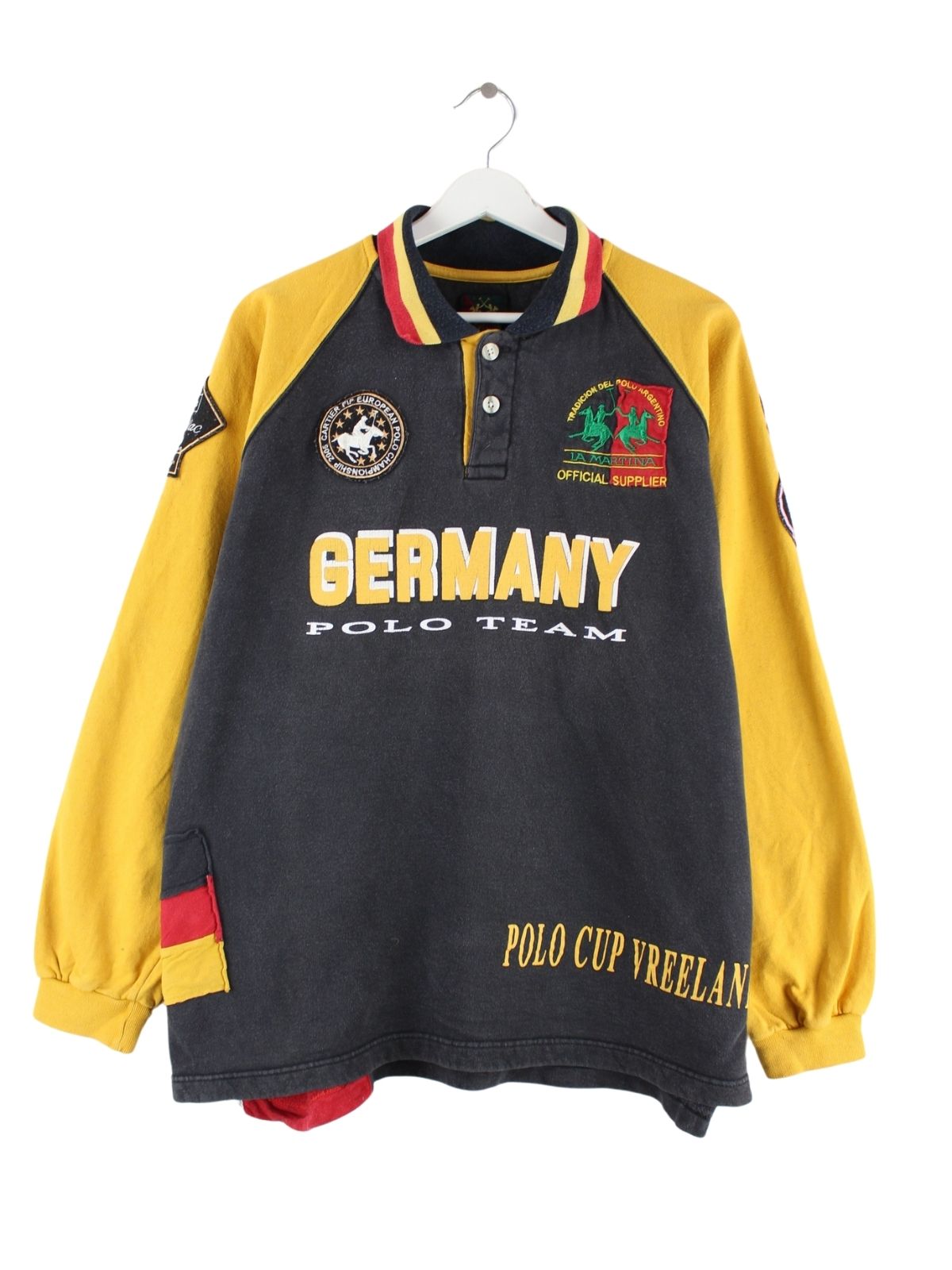 La Martina 90s Vintage Germany Rugby Langarm Polo Schwarz L