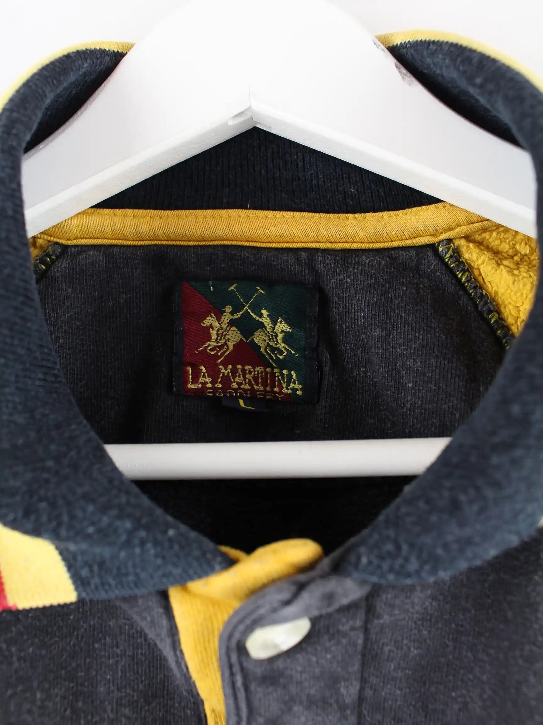 Poloshirt der Brand La Martina in Größe L aus den 90'ern. Es ist aus Baumwolle angefertigt und in Schwarz bei uns vorrätig.