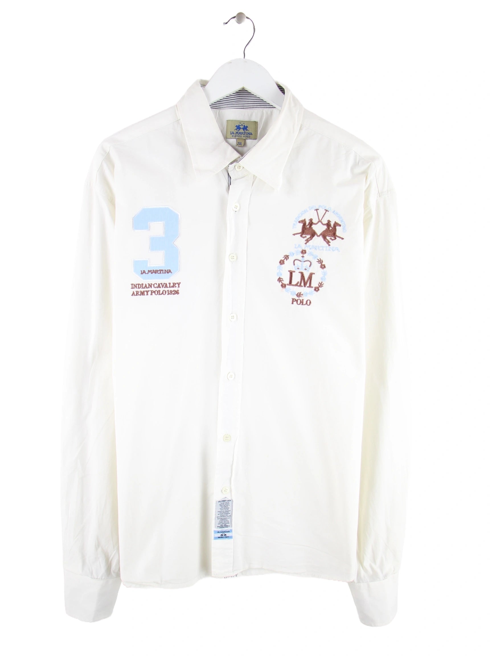Freizeit Hemd vom Brand La Martina in Größe XXL aus Anfang der 2000'er. Es ist aus Baumwolle und in Weiß vorrätig.