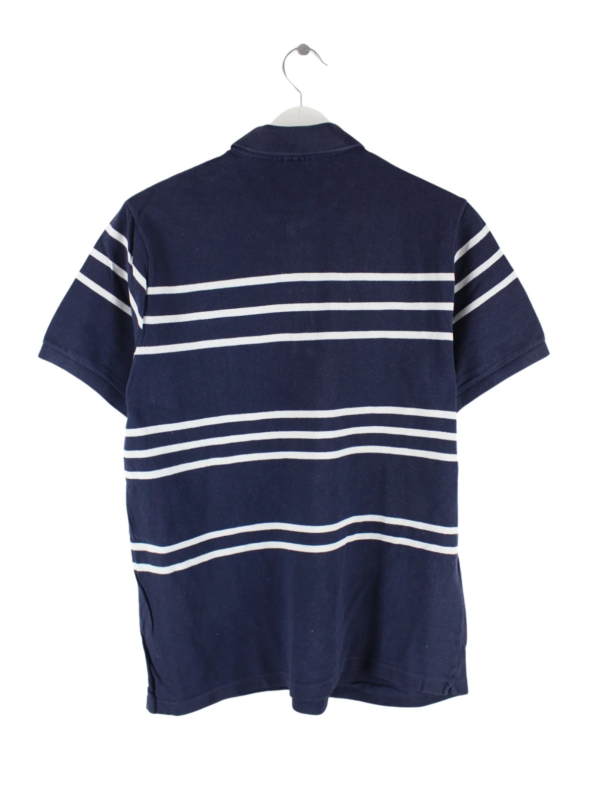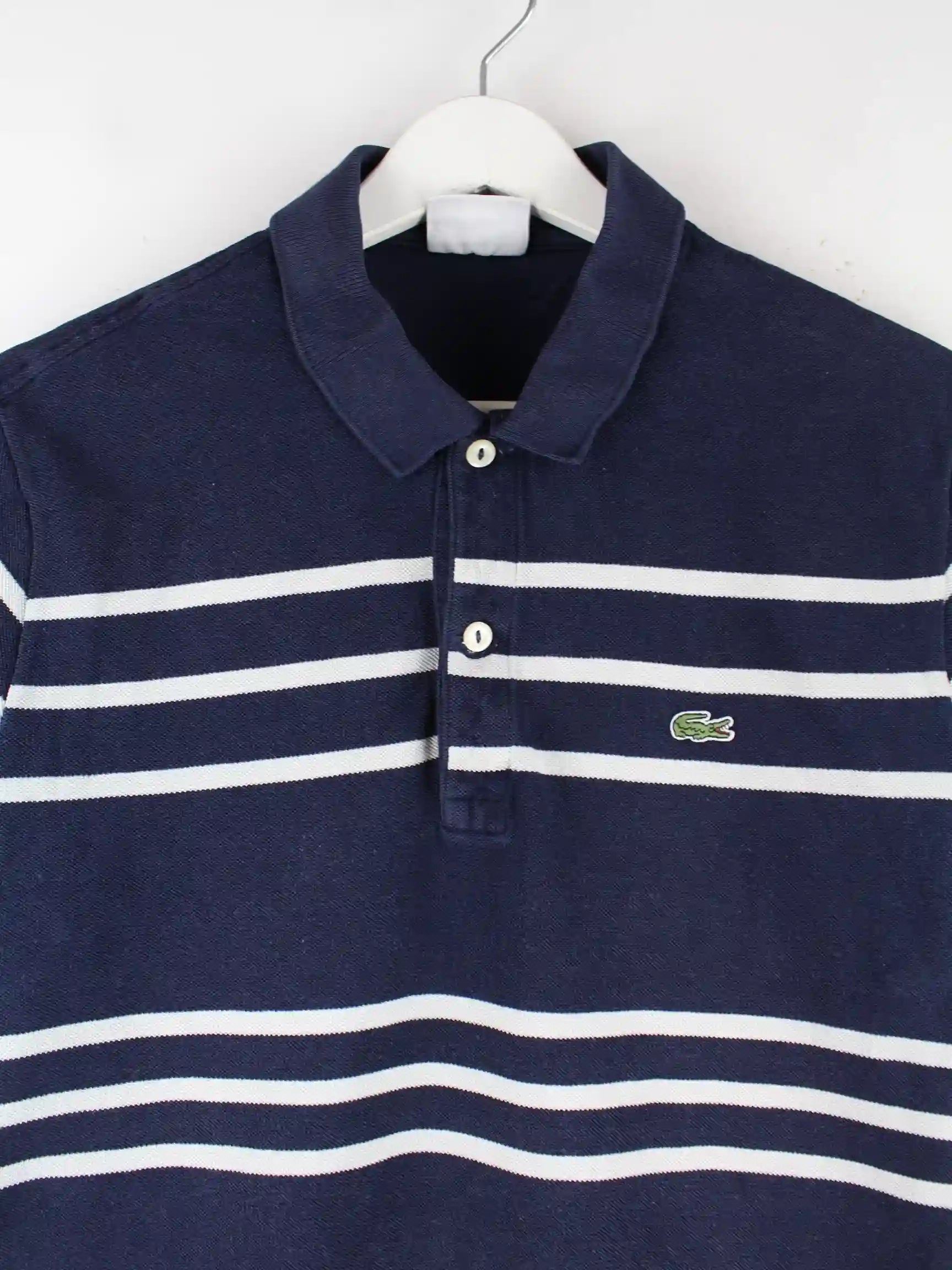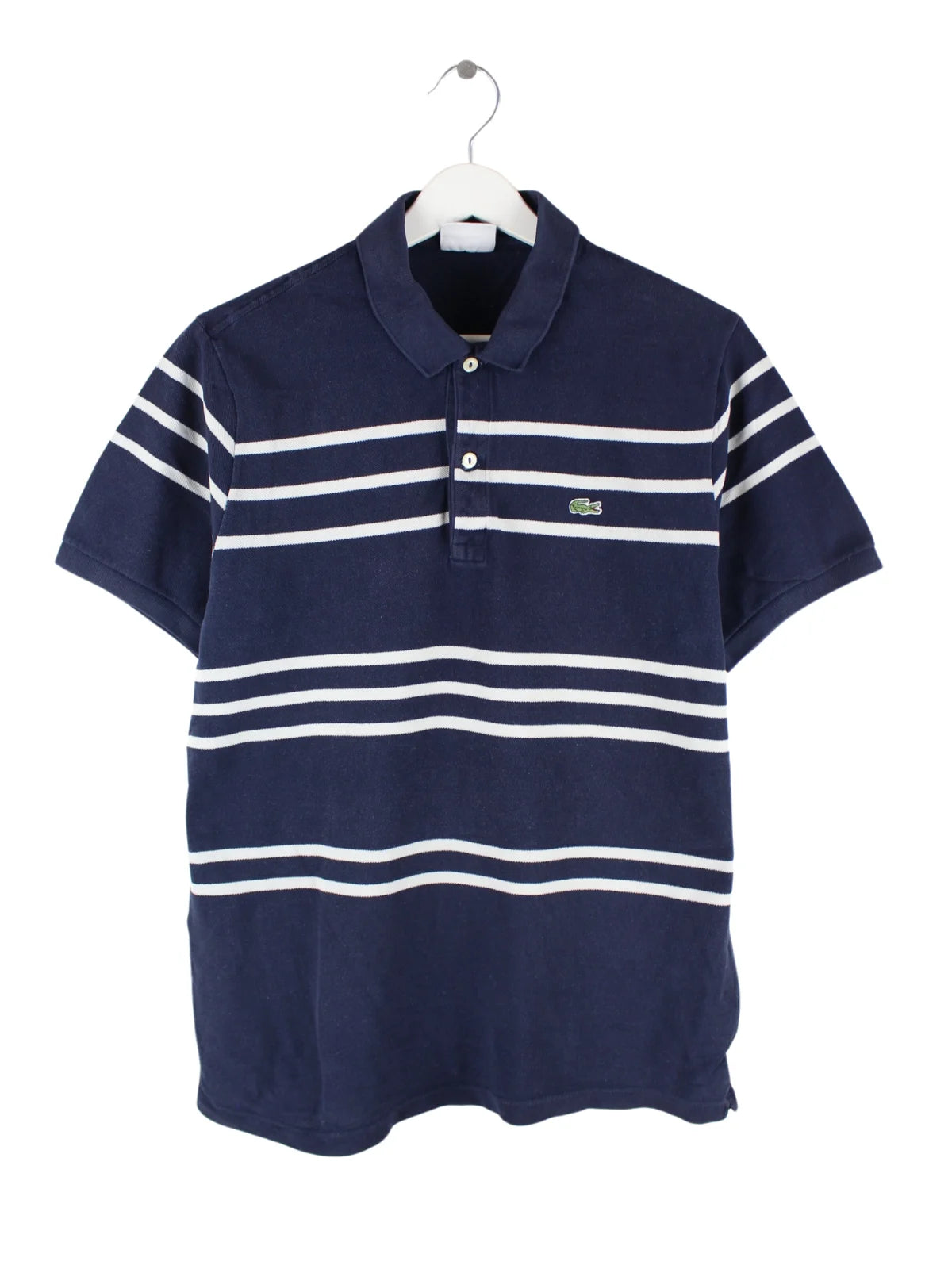 Blaues Poloshirt der Marke Lacoste in Größe M. Es ist aus Baumwolle gefertigt und in sehr gutem Zustand auf Lager.