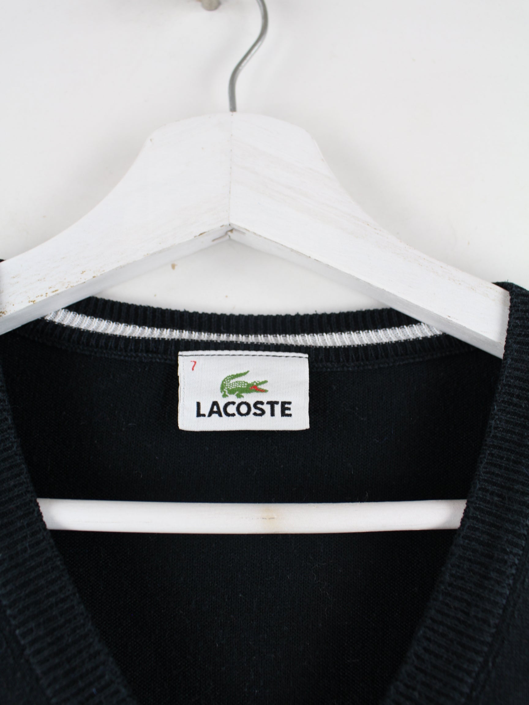 Schwarzer Pullover von Lacoste in Größe M. Er ist aus Baumwolle und in gutem Zustand lieferbar.