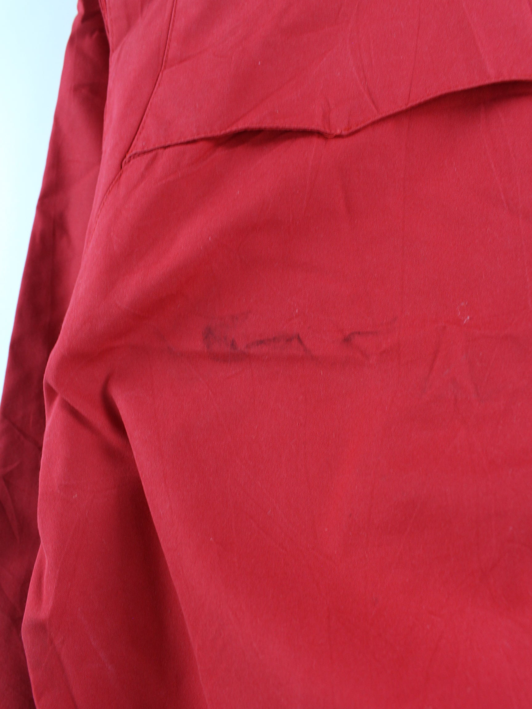 Rote Leichte Jacke von Lacoste aus den 80'ern in Größe XS. Sie ist aus einer Baumwollmischung gefertigt und in gutem Zustand bei uns zu bekommen.