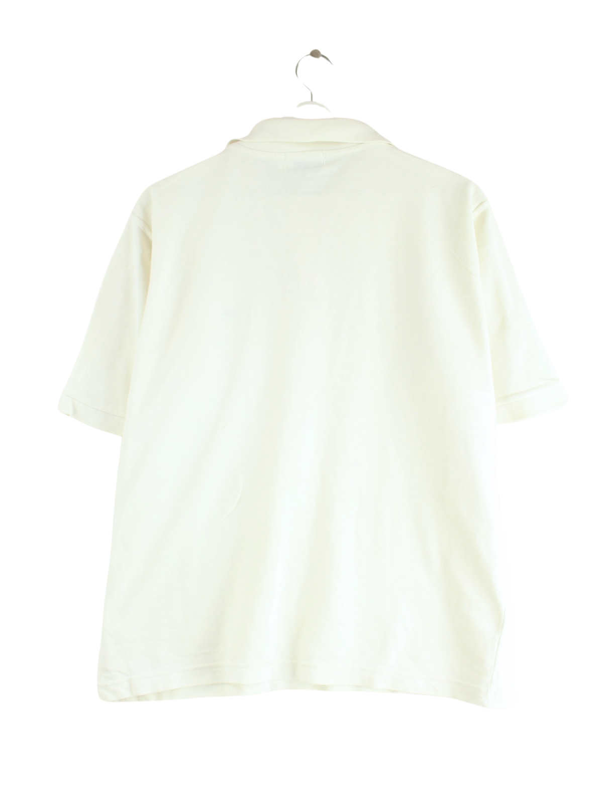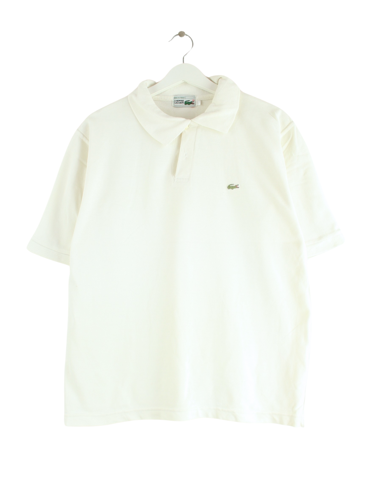 Poloshirt vom Label Lacoste in Größe M aus den 90'ern. Es ist aus einer Baumwollmischung gefertigt und in Beige im Angebot.
