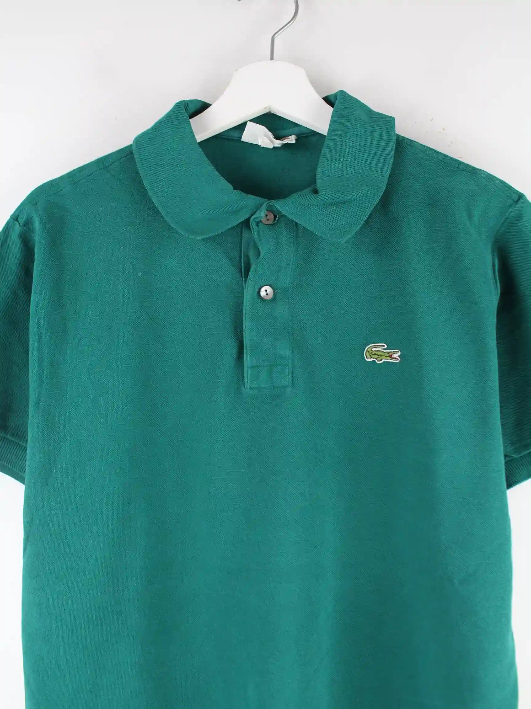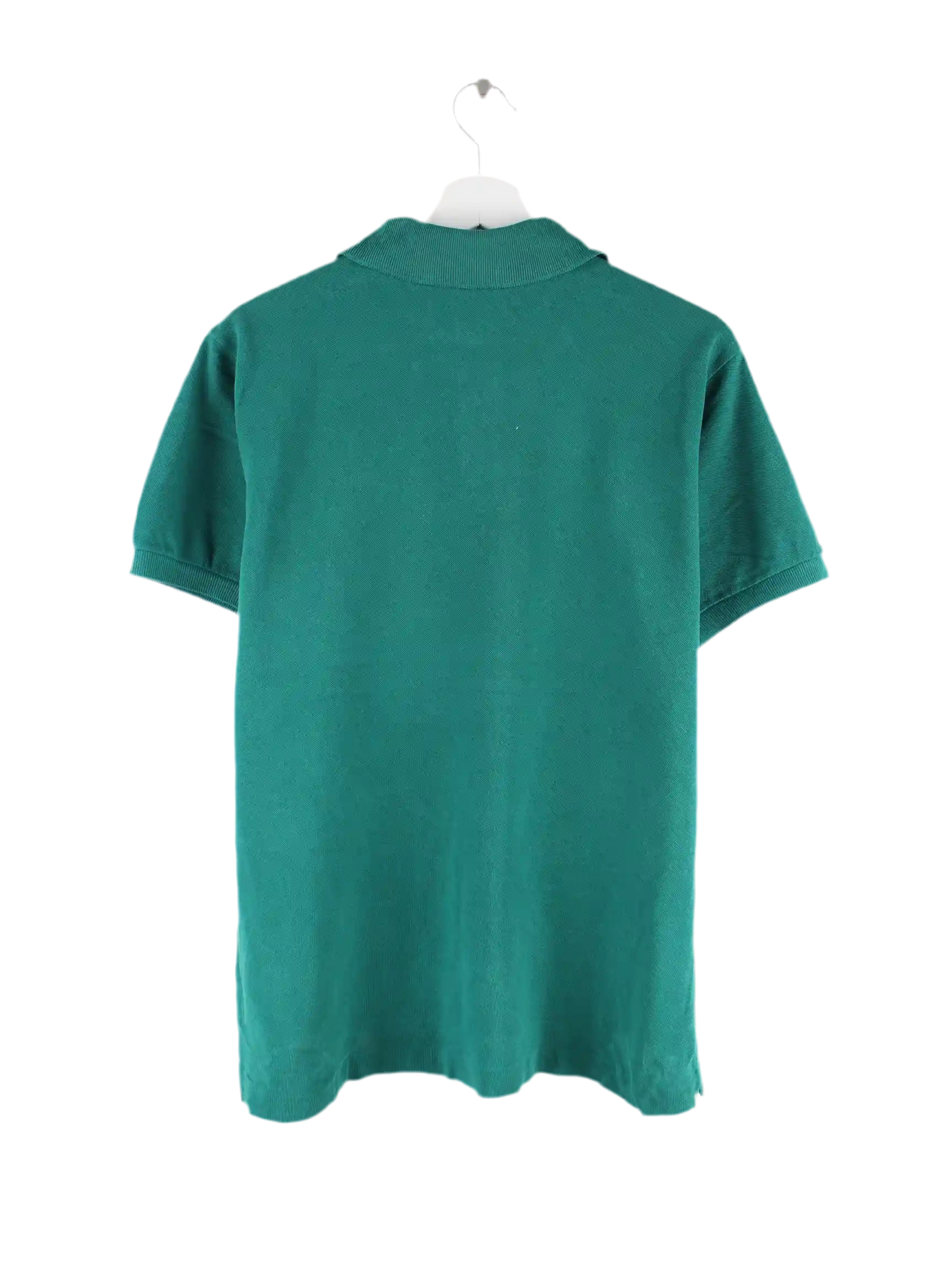 Grünes Poloshirt der Brand Lacoste aus den 90'ern in Größe L. Es ist aus Baumwolle und in sehr gutem Zustand bei uns zu bekommen.
