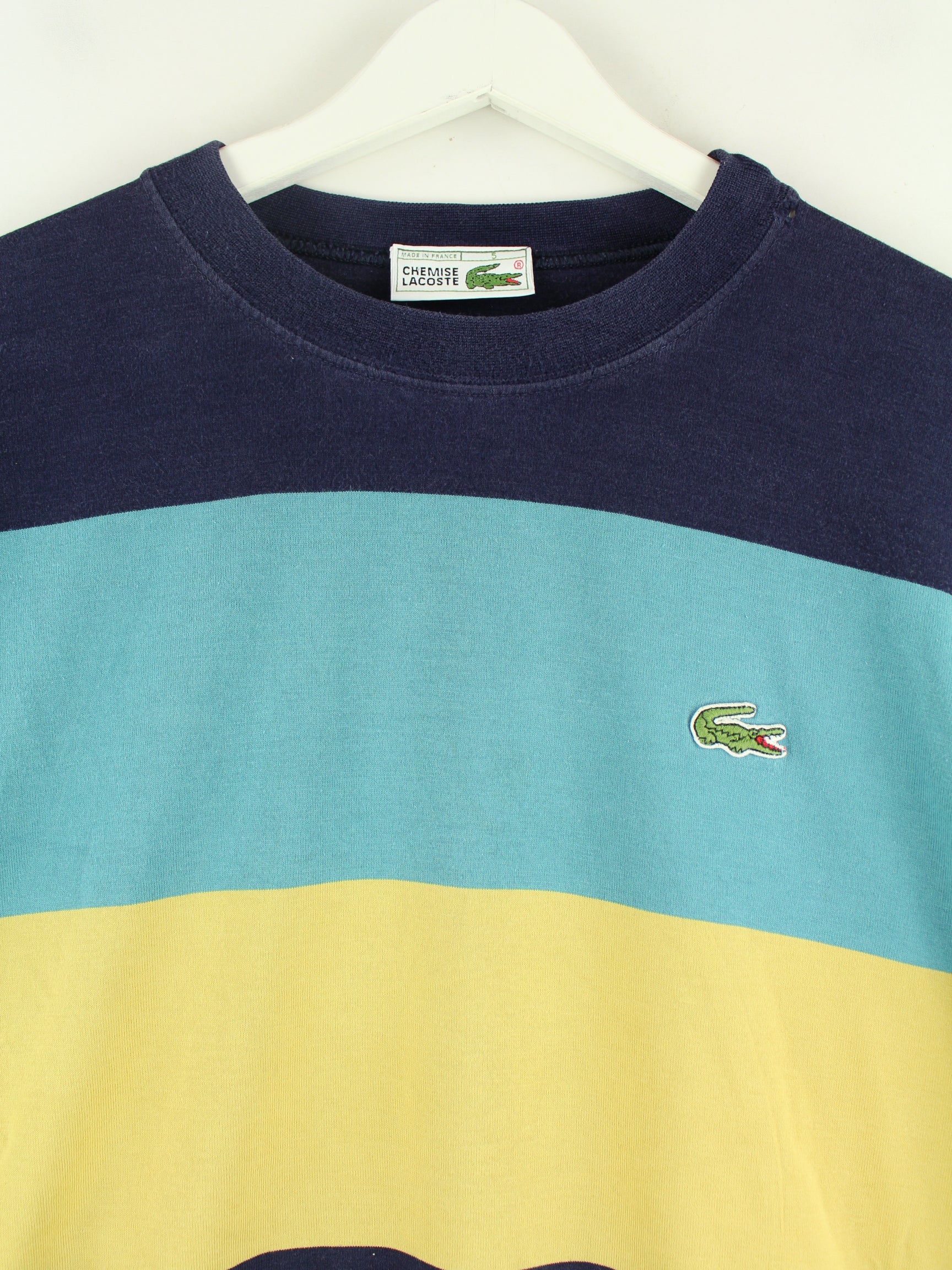 Sweater aus dem Hause Lacoste in Größe M aus den 90'ern. Er ist aus einer Baumwollmischung produziert und in bunten Farben zu haben.