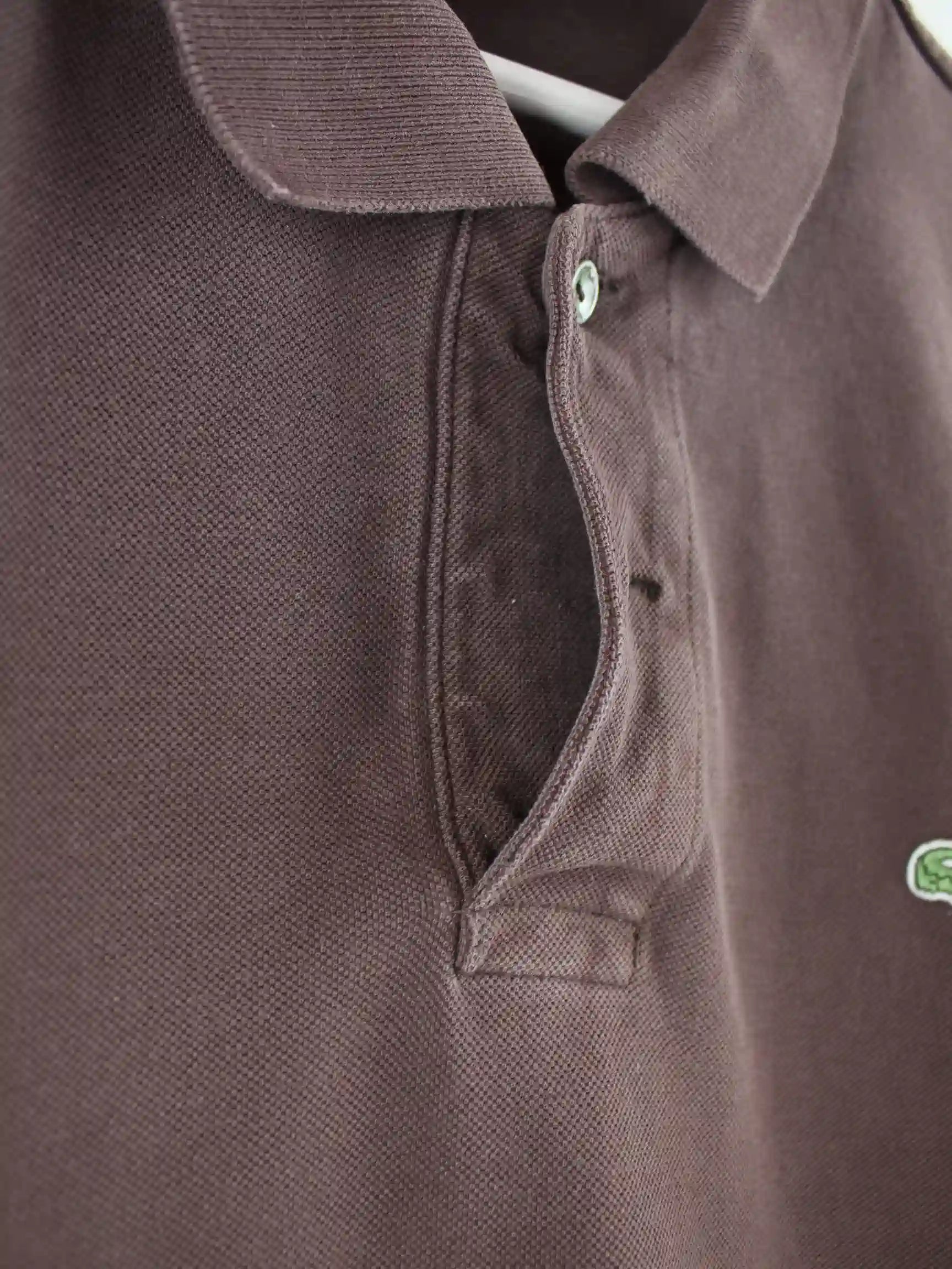 Poloshirt der Brand Lacoste in Größe L aus den 90'ern. Es ist aus Baumwolle gefertigt und in Braun vorrätig.