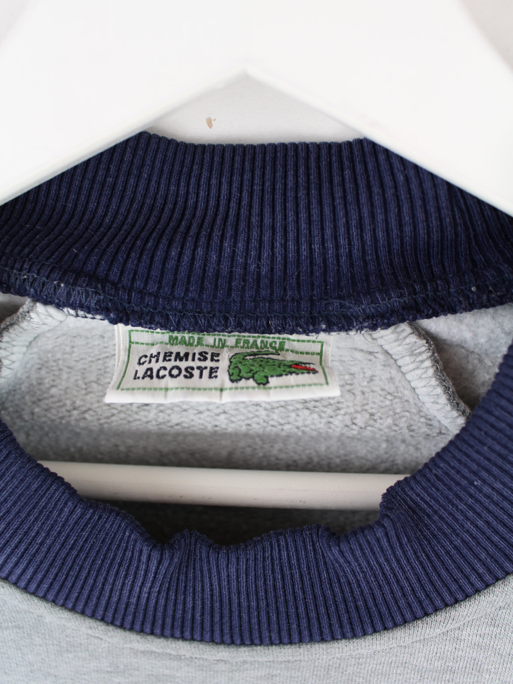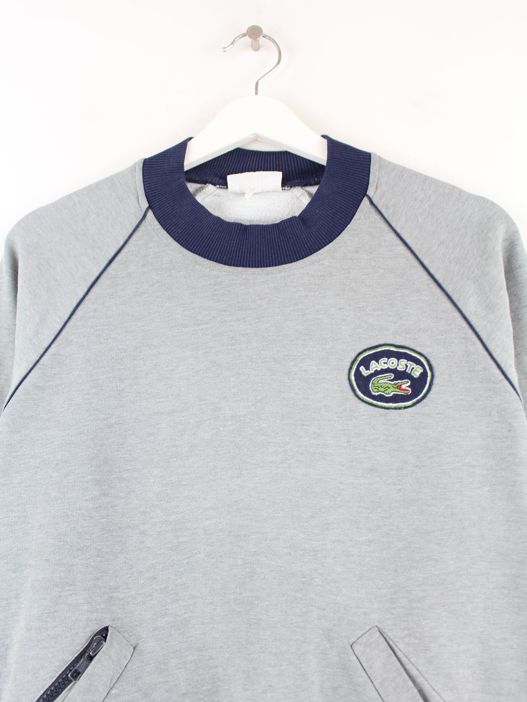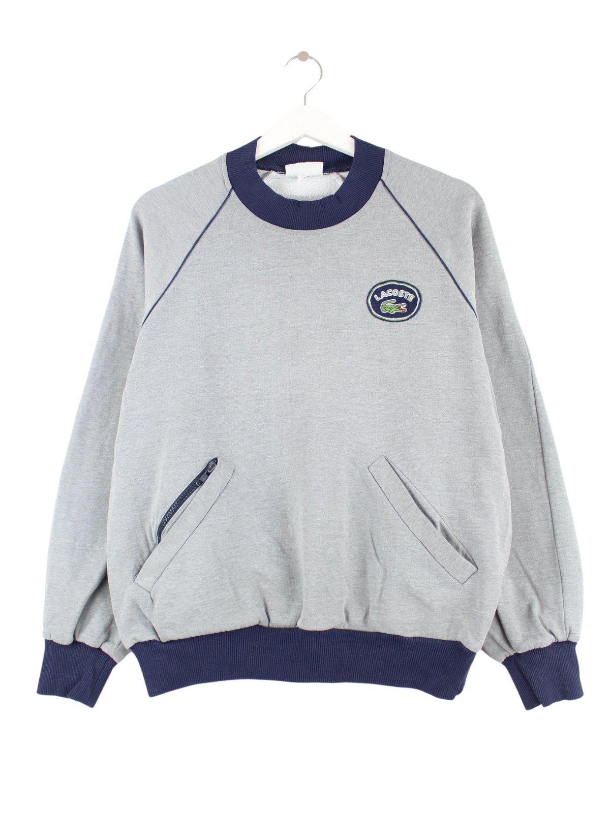 Grauer Sweater vom Label Lacoste aus den 90'ern in Größe M. Er ist aus einer Baumwollmischung gefertigt und in gutem Zustand im Angebot.