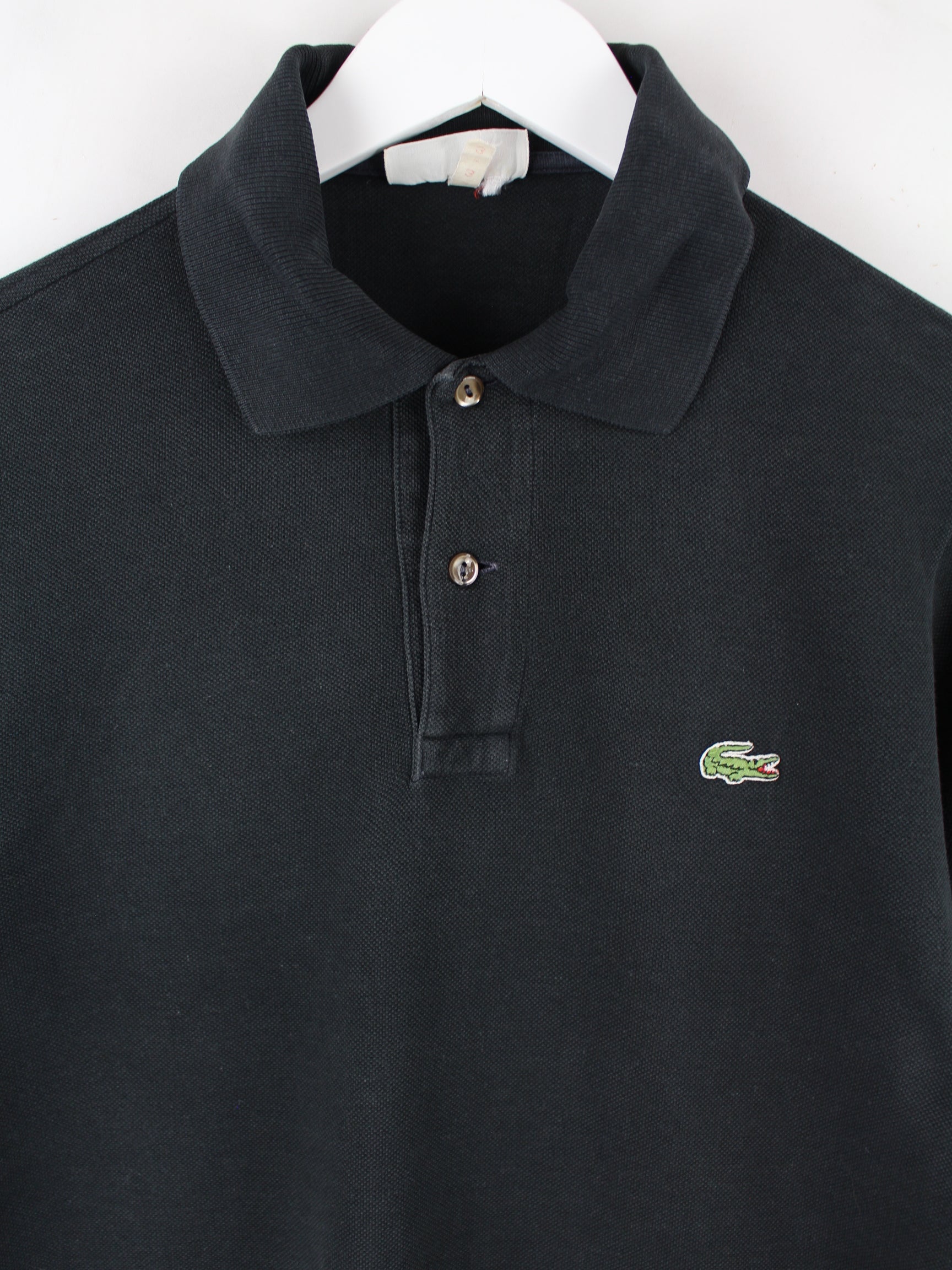 Poloshirt von Lacoste in Größe S aus den 90'ern. Es ist aus Baumwolle produziert und in Schwarz vorrätig.