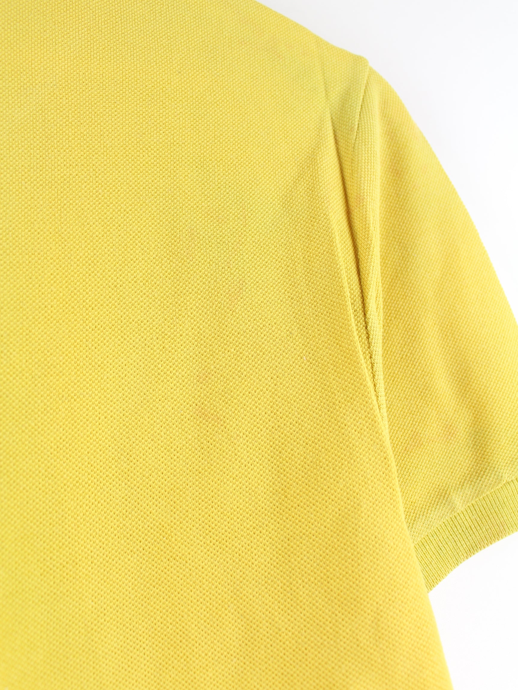 Gelbes Poloshirt von Lacoste in Größe S. Es ist aus Baumwolle gefertigt. Den Zustand würden wir als 'In Ordnung' bezeichnen (vergl. Bilder).