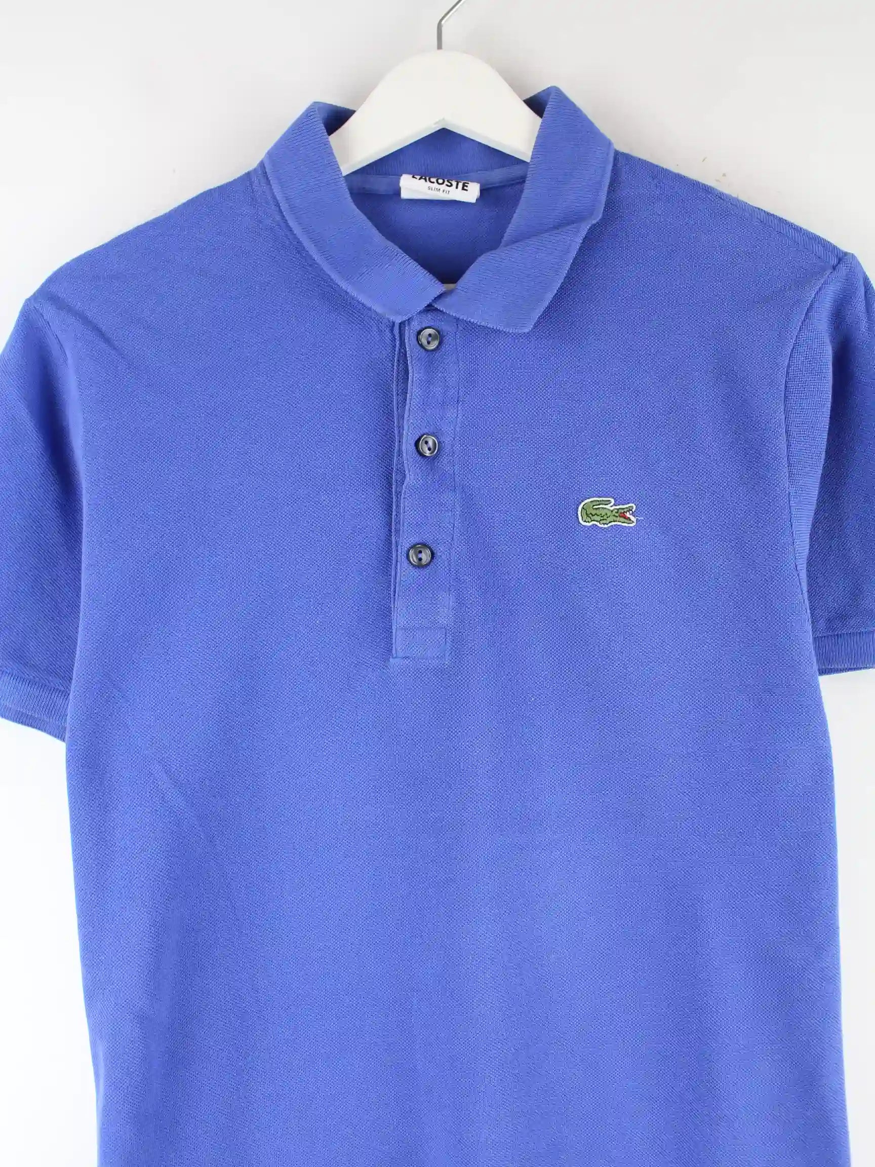 Blaues Poloshirt vom Brand Lacoste in Größe M. Es ist aus Baumwolle produziert und in gutem Zustand in Stock.