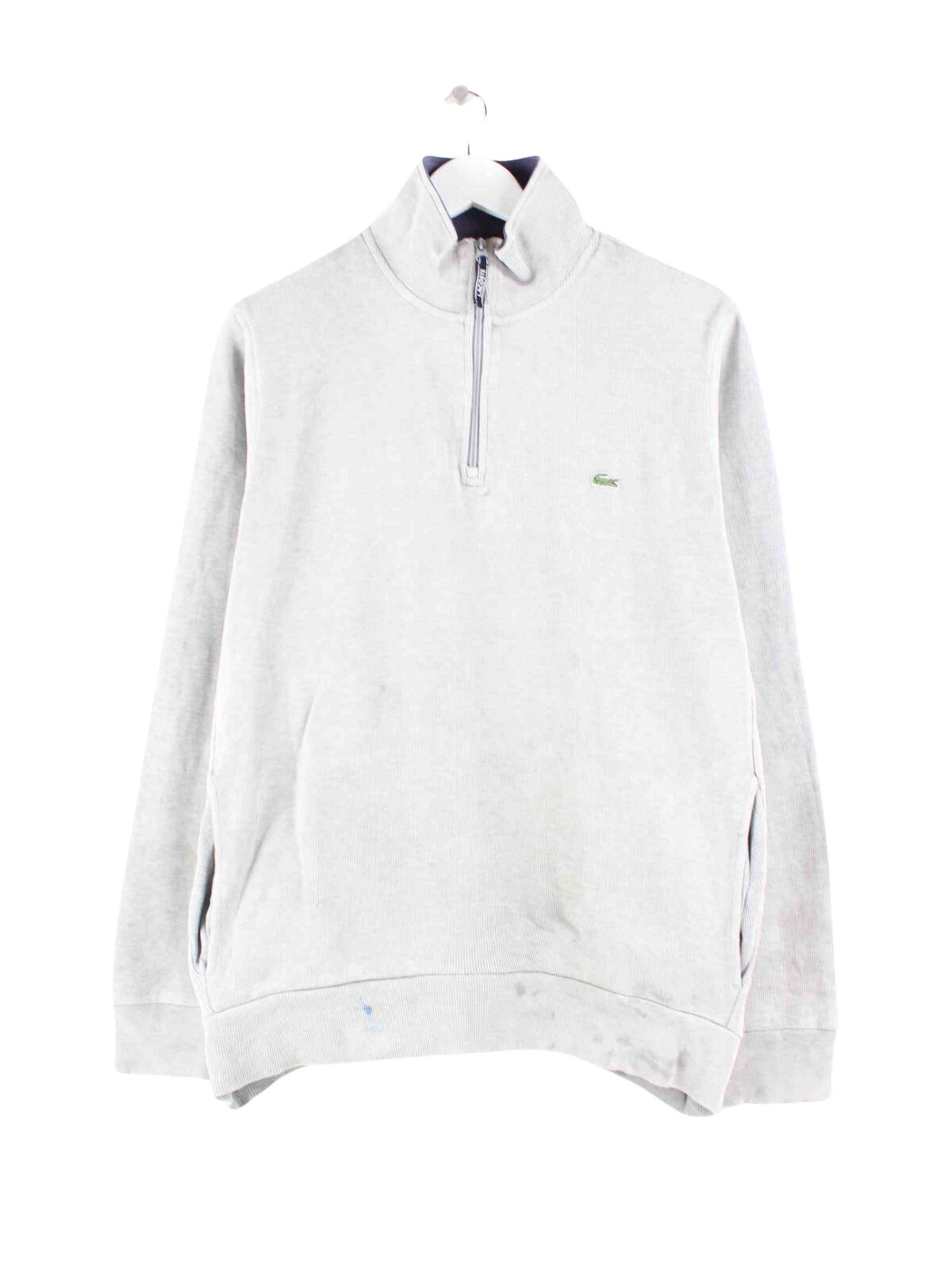 Sweater vom Brand Lacoste mit half Zip in Größe L. Er ist aus einer Baumwollmischung hergestellt und in Grau im Angebot.