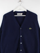 Blaue Strickjacke vom Brand Lacoste aus den 80'ern in Größe L. Sie ist aus Baumwolle gemacht und in gutem Zustand bei uns vorrätig.