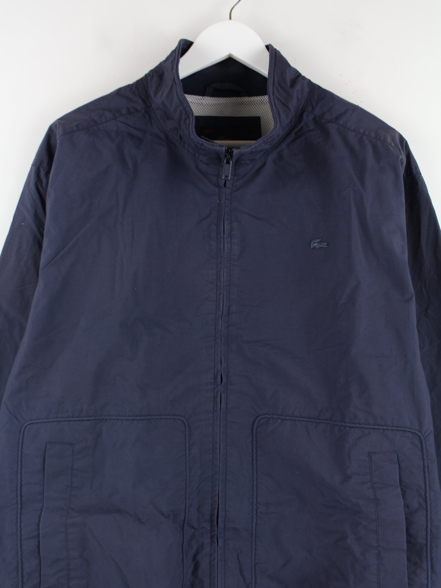 Leichte Jacke der Marke Lacoste in Größe L. Sie ist aus Synthetik gefertigt und in Blau bei uns vorrätig.