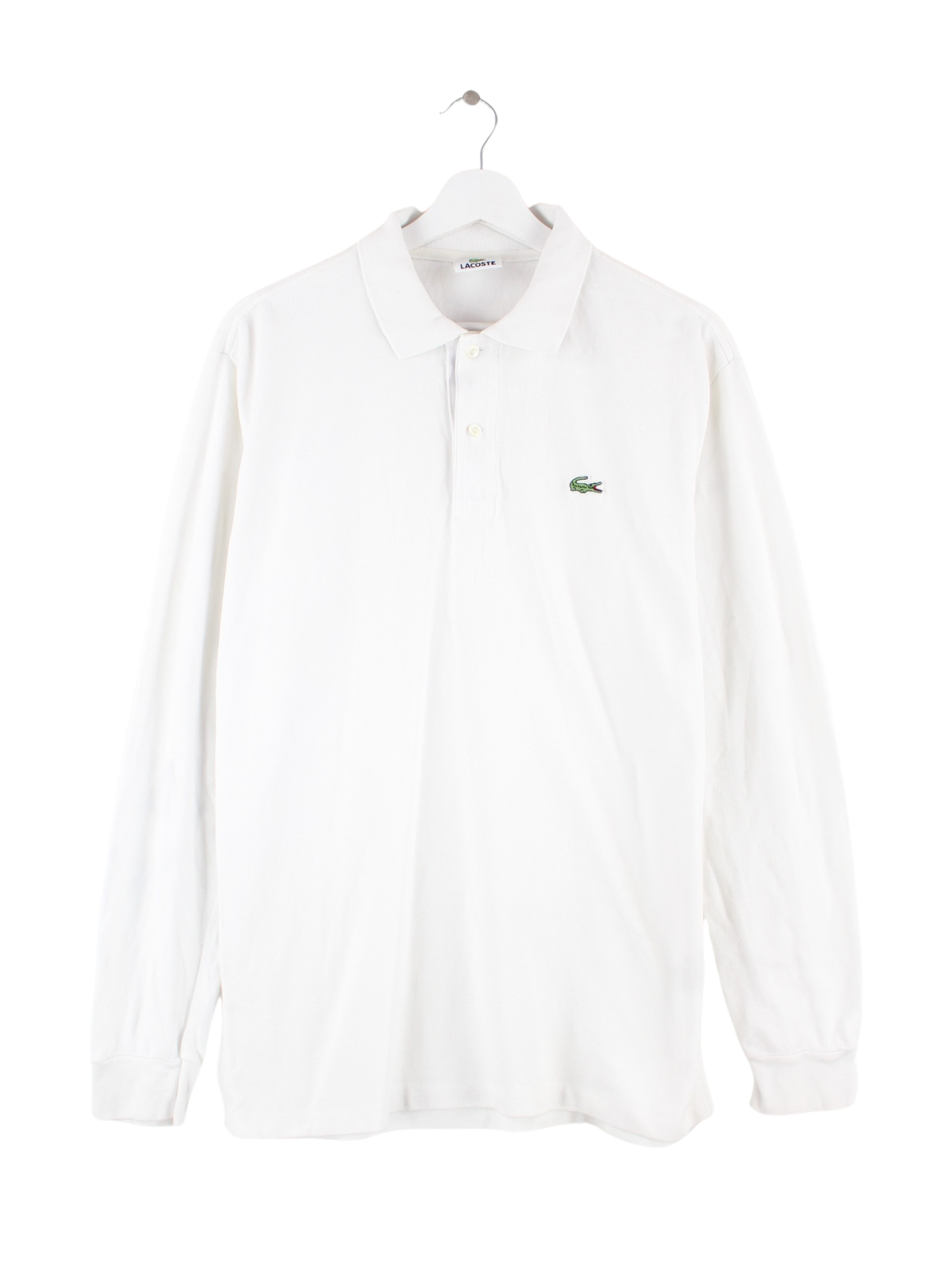 Poloshirt vom Label Lacoste in Größe M. Es ist aus Baumwolle hergestellt und in Weiß zu haben.