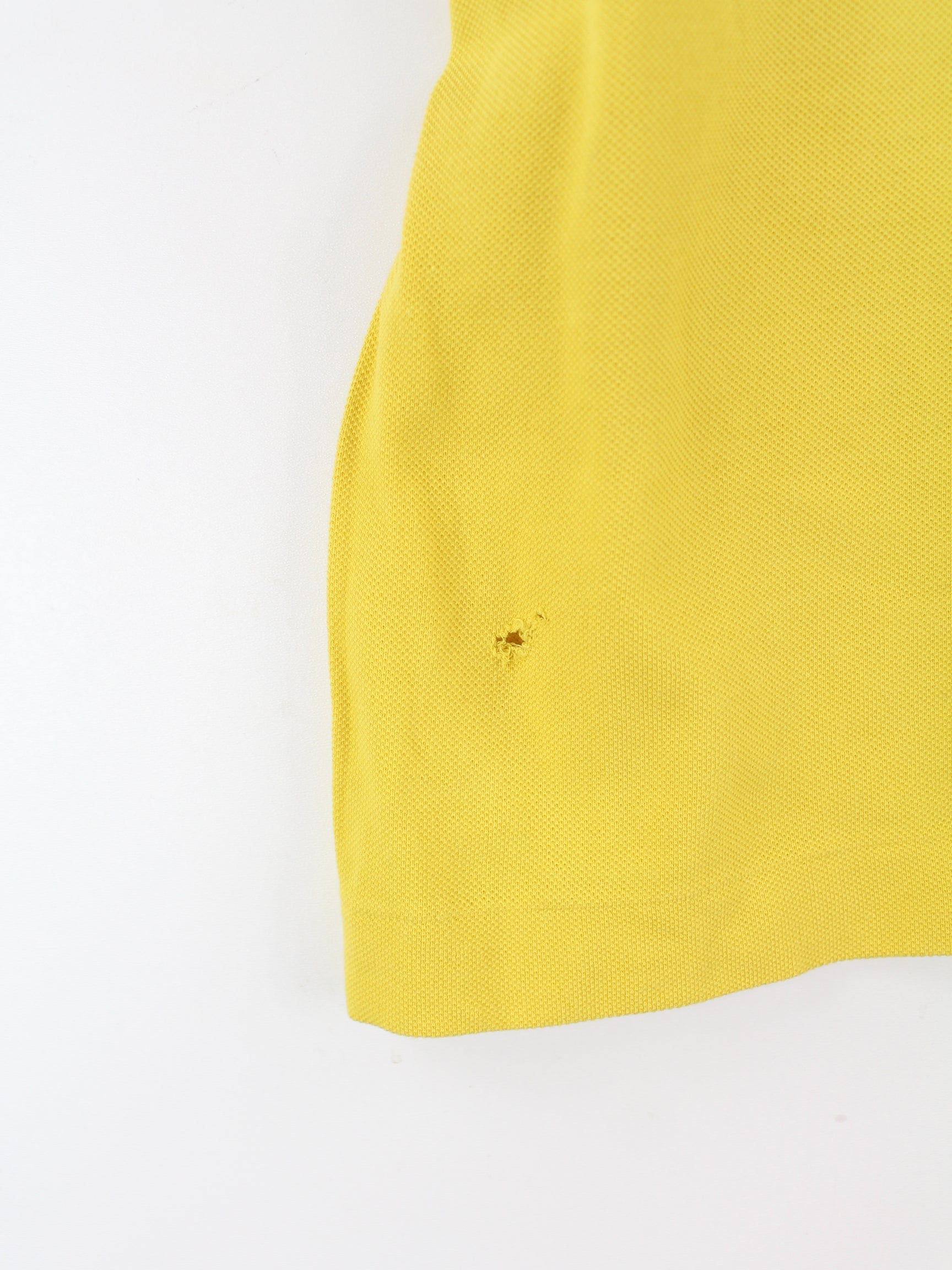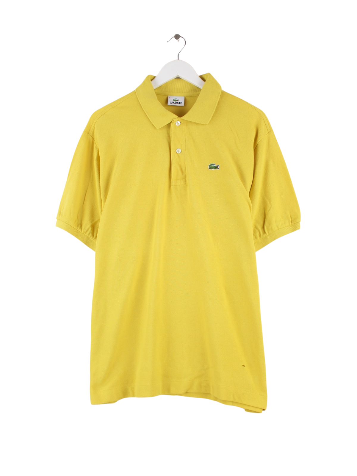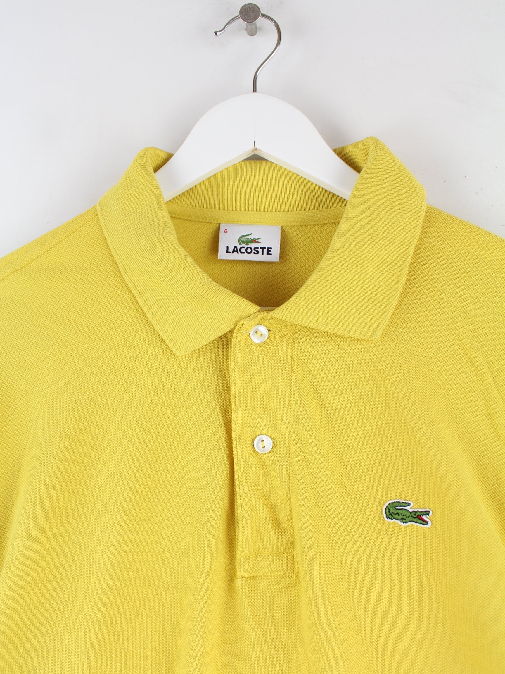 Gelbes Poloshirt des Labels Lacoste in Größe XL. Es ist aus Baumwolle produziert und in gutem Zustand bei uns zu bekommen.