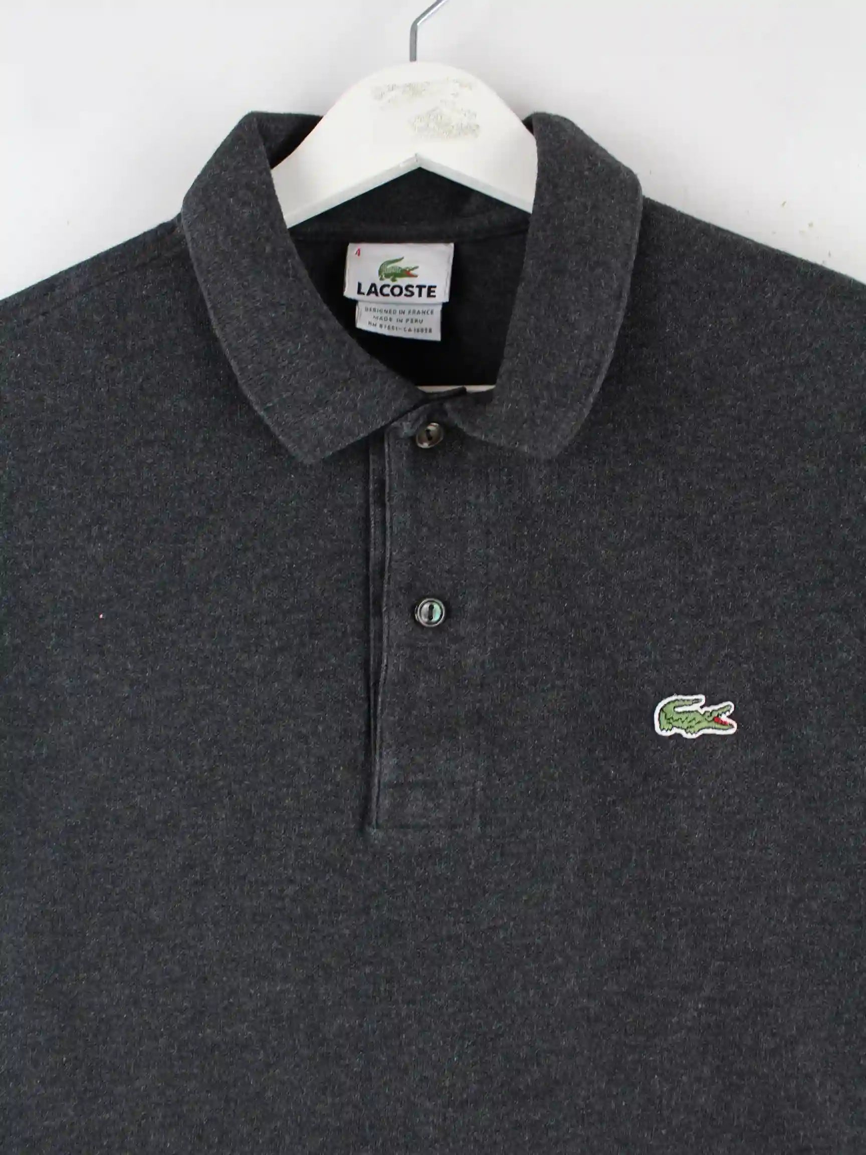 Graues Poloshirt vom Brand Lacoste in Größe M. Es ist aus Baumwolle produziert und in sehr gutem Zustand auf Lager.