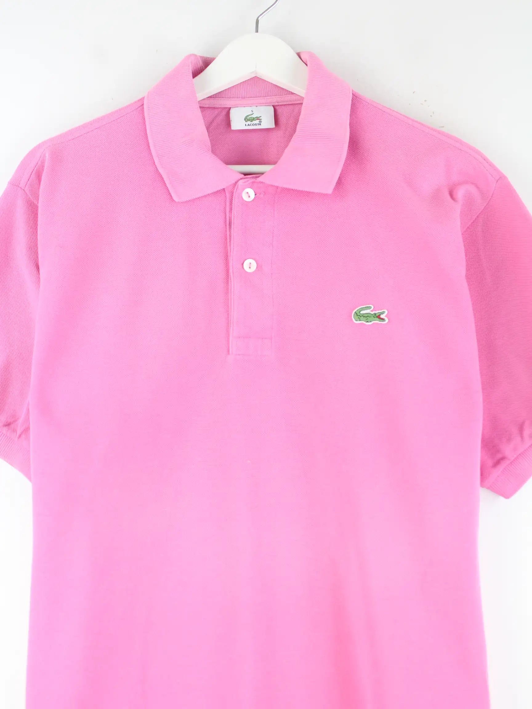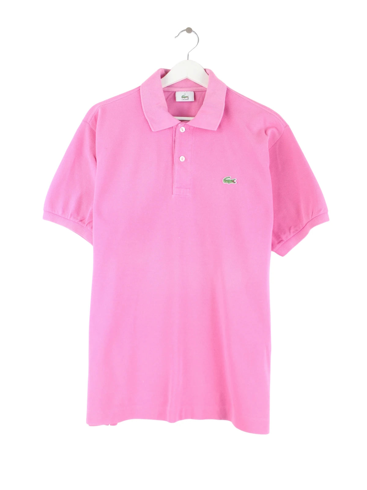 Rosafarbenes Poloshirt der Brand Lacoste in Größe L. Es ist aus Baumwolle gefertigt und in sehr gutem Zustand im Bestand.