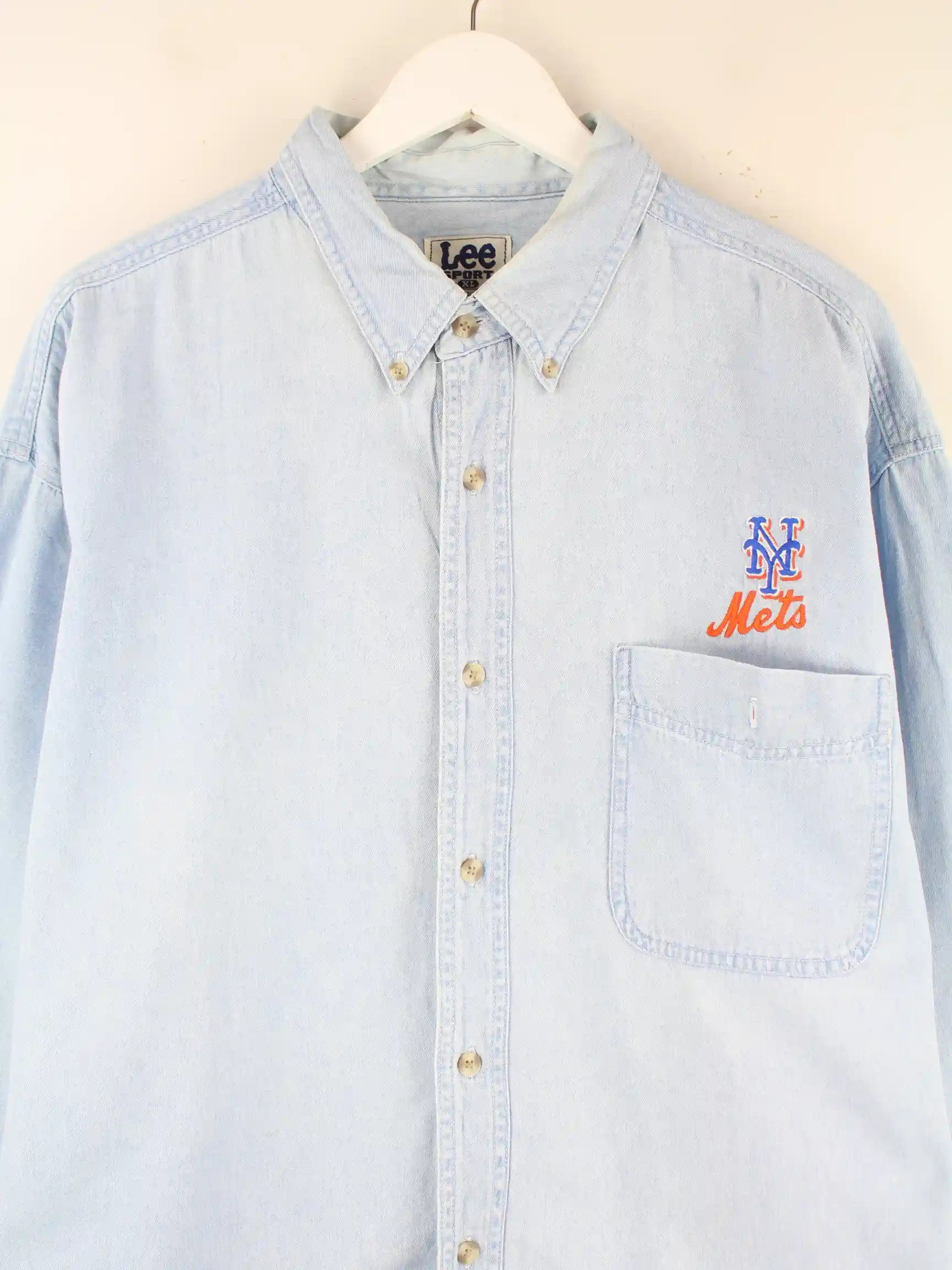 Lee 00s Mets Embroidered Jeans Hemd Blau XL