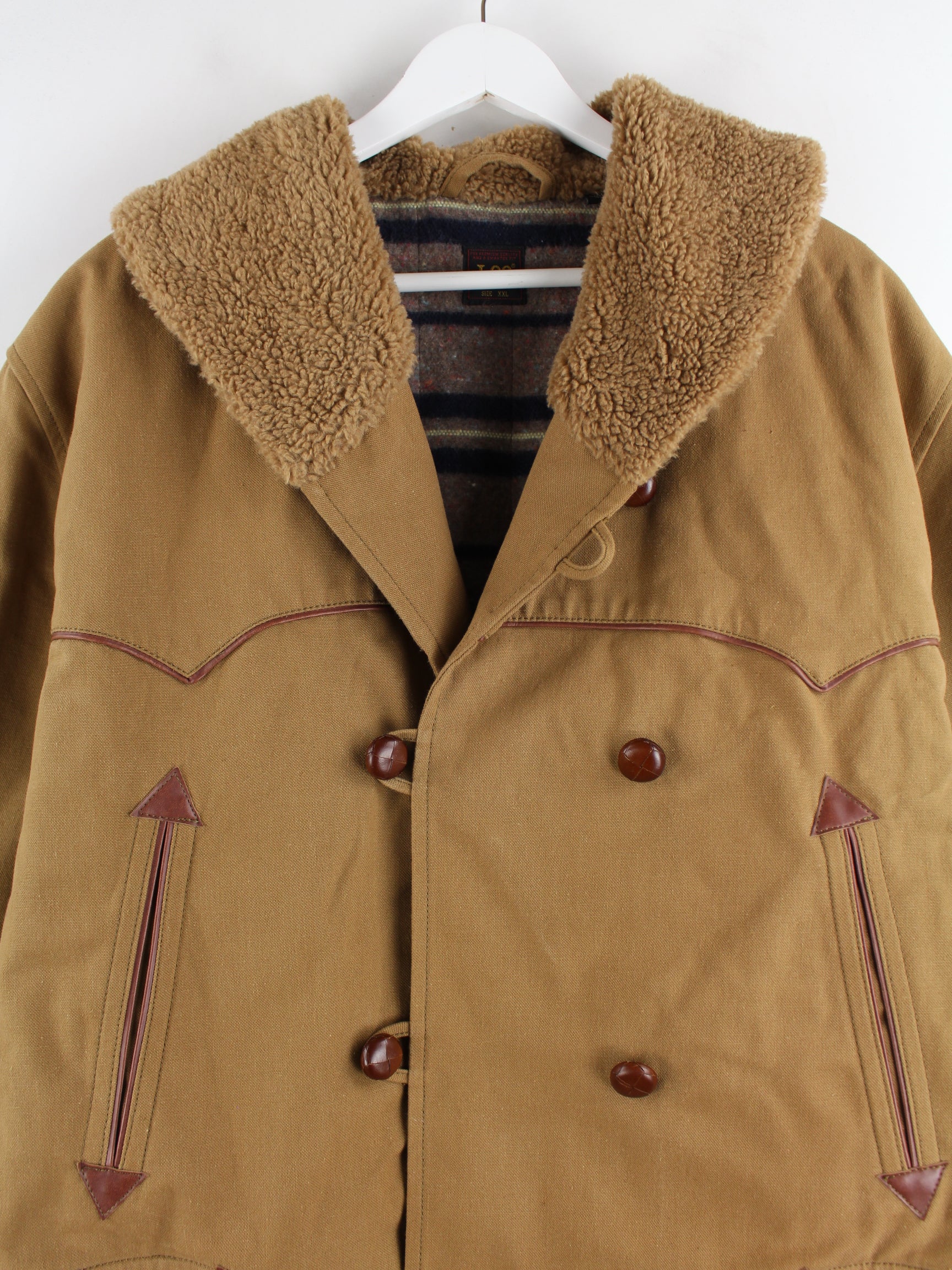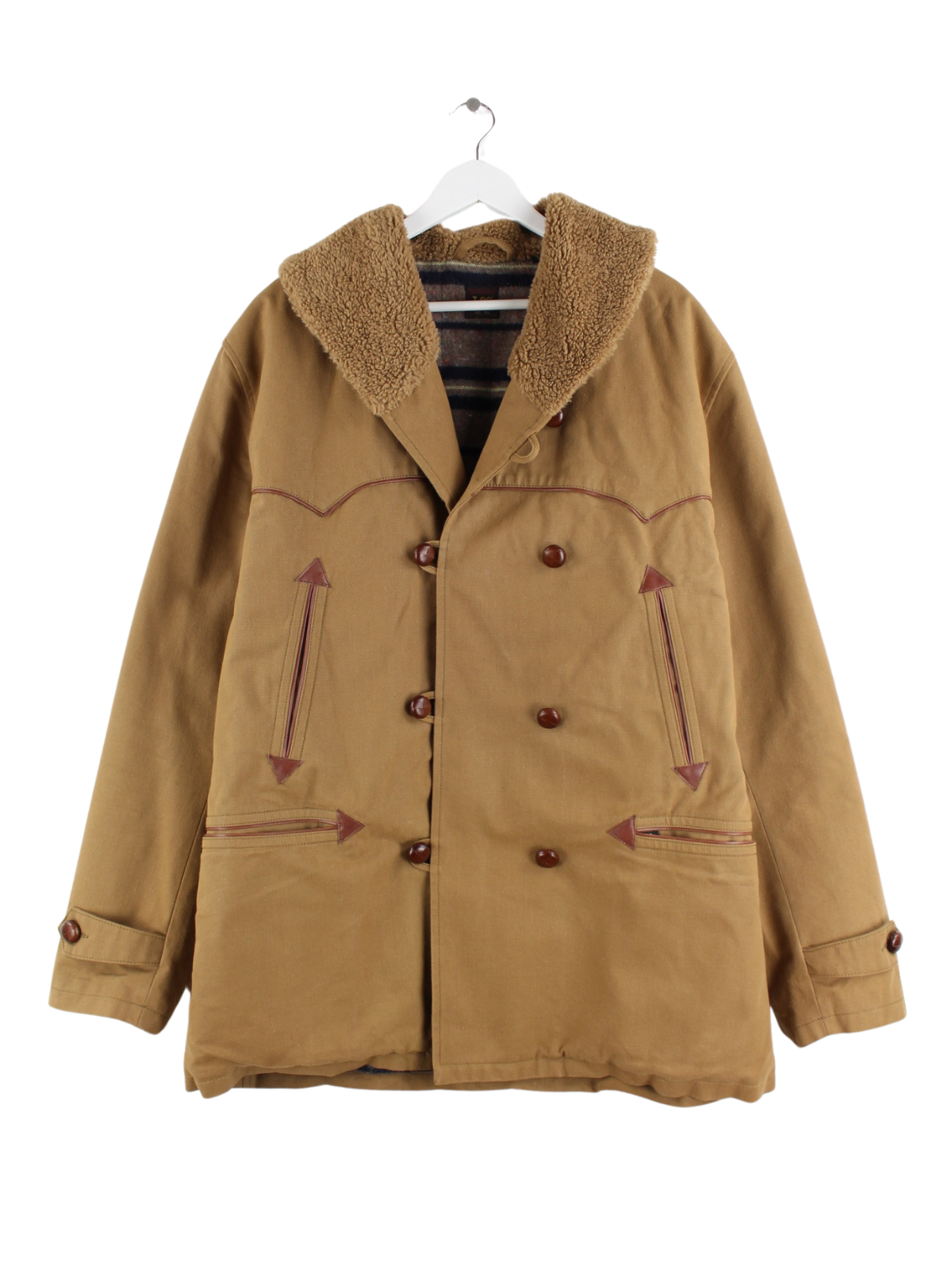 Mantel vom Label Lee in Größe XXL aus den 90'ern. Er ist aus einer Baumwollmischung hergestellt und in Braun bei uns zu bekommen.