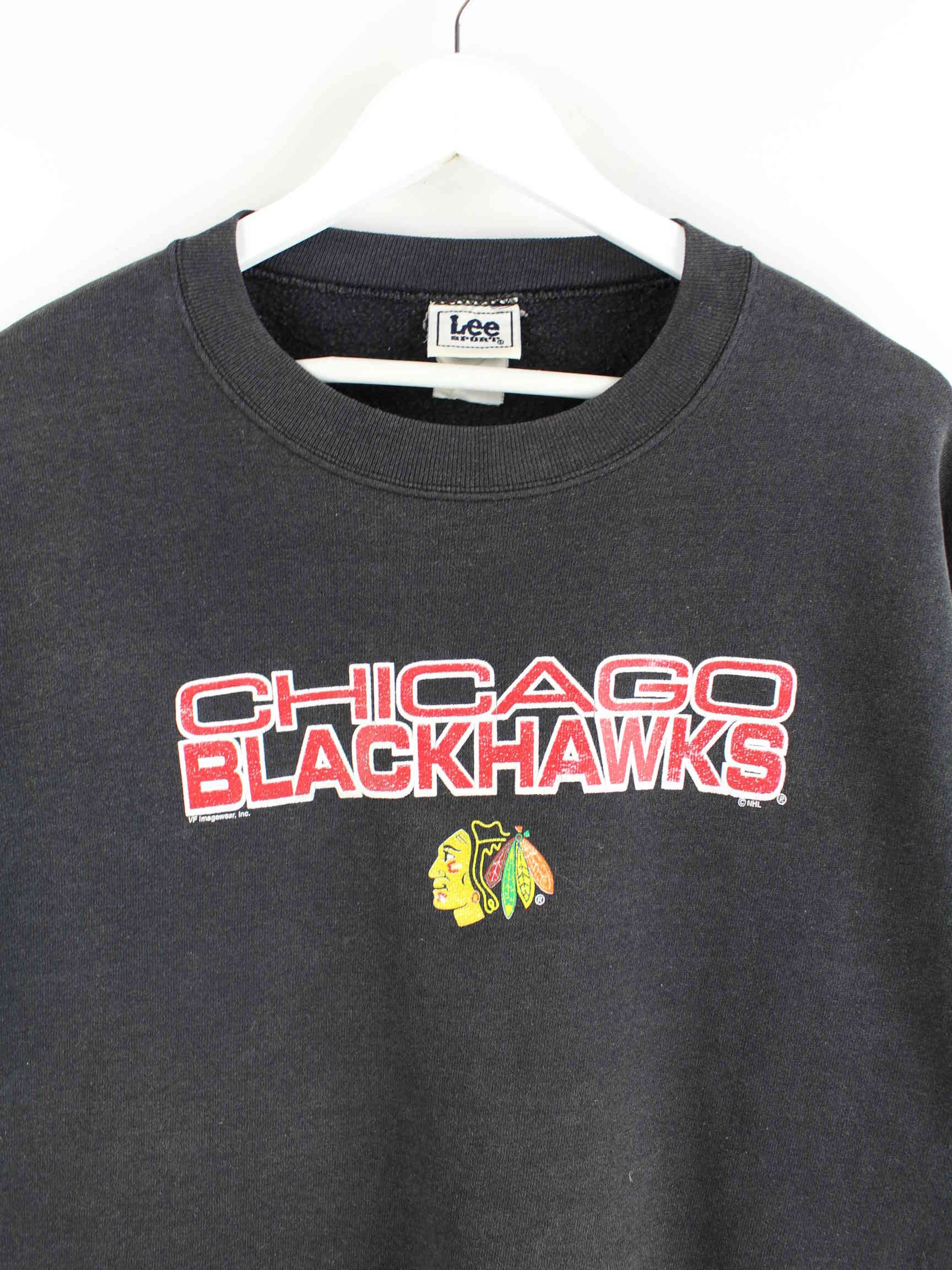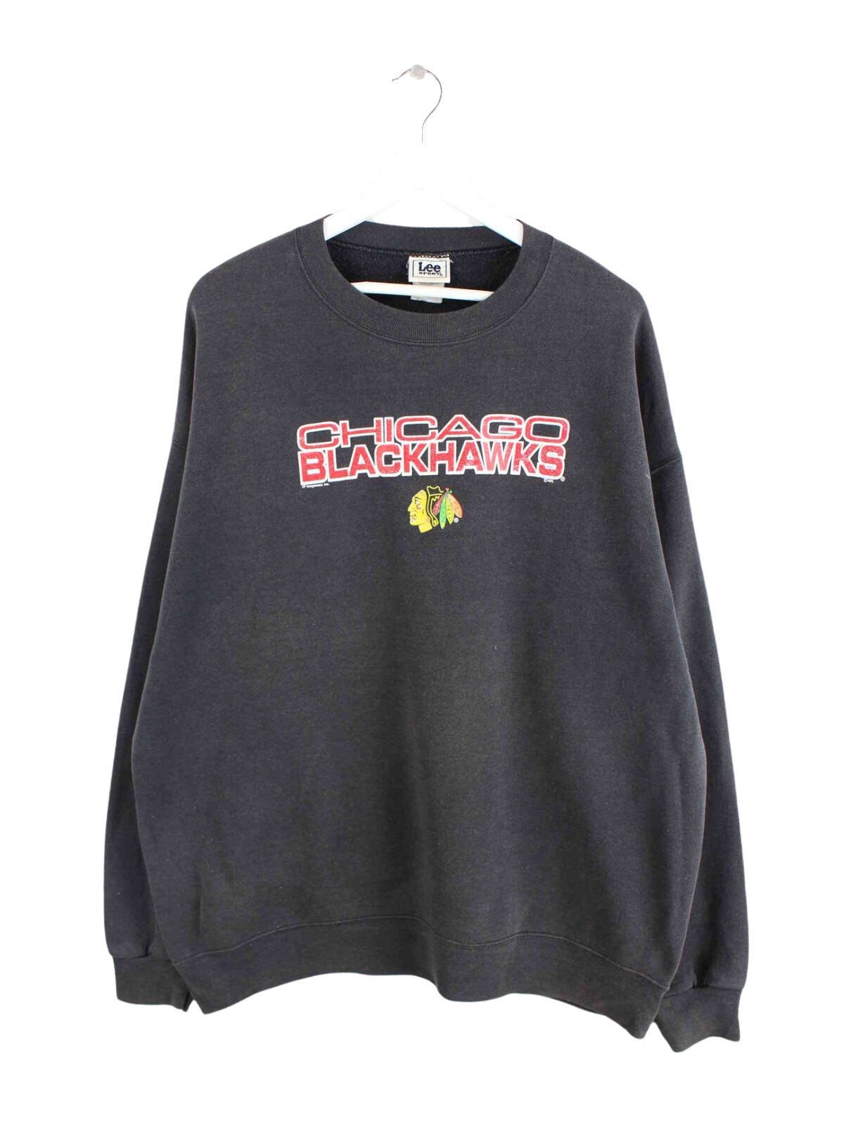Sweater vom Brand Lee in Größe XXL aus den 90'ern. Er ist aus einer Baumwollmischung angefertigt und in Schwarz im Bestand. Mit schönem Blackhawks Print.