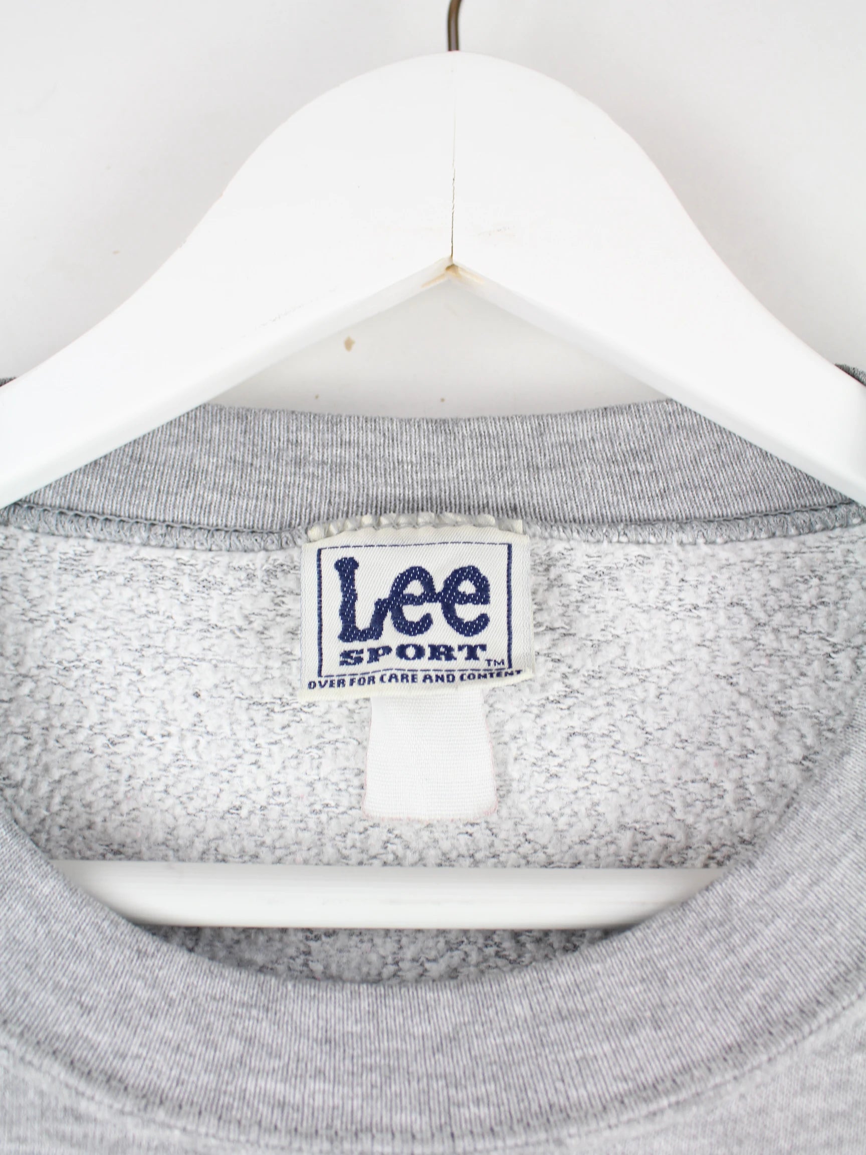 Grauer Sweater des Labels Lee aus den 90'ern in Größe M. Er ist aus einer Baumwollmischung und in gutem Zustand auf Lager. Mit schönem Wolverines Print.