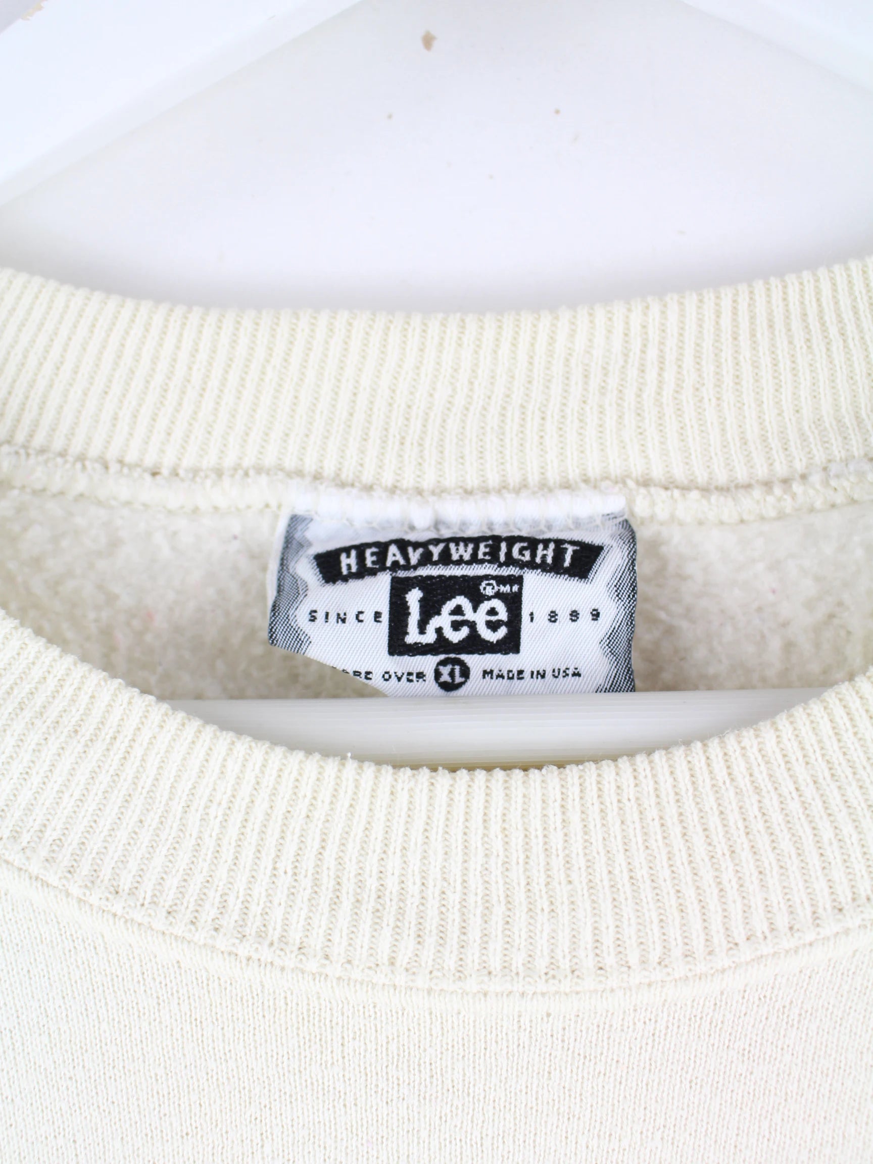 Beigefarbener Sweater der Brand Lee aus den 90'ern in Größe XL. Er ist aus einer Baumwollmischung gemacht und in gutem Zustand bei uns vorrätig. Mit schickem Cruise Print.