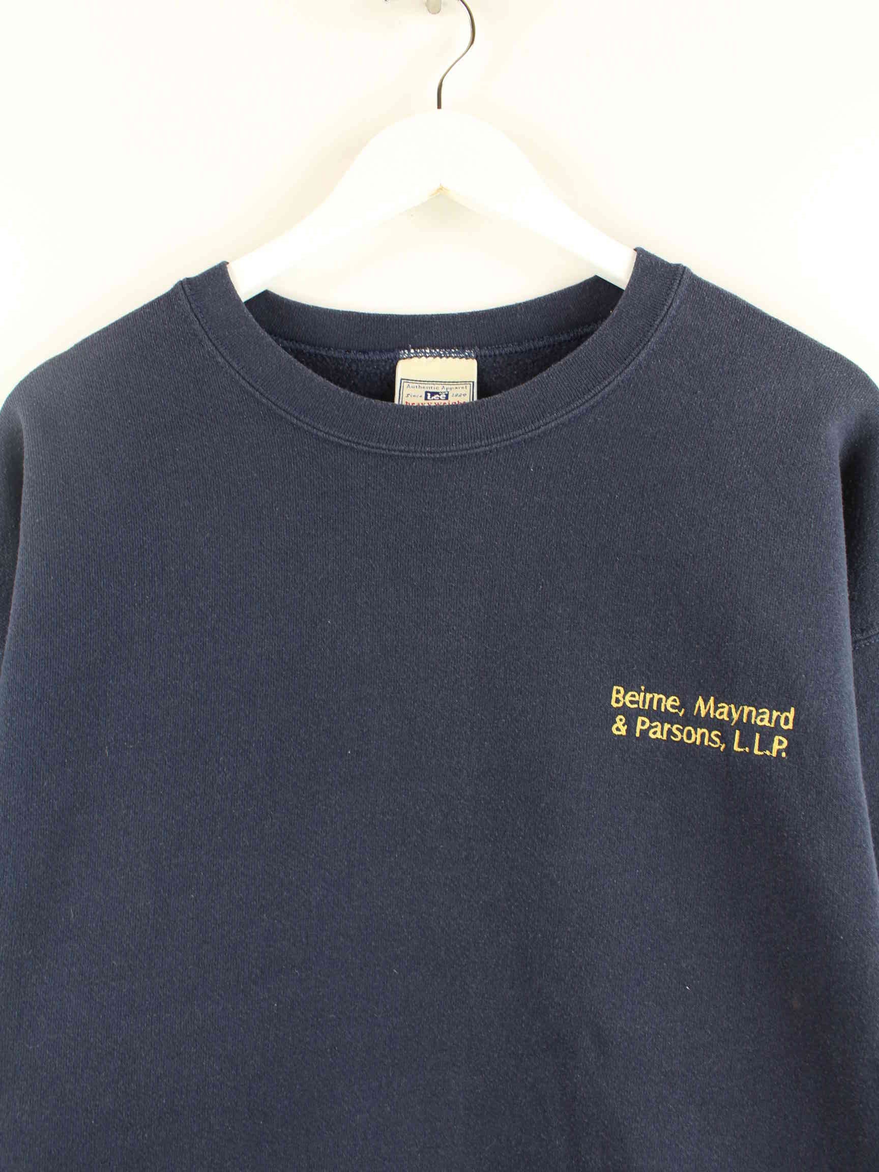 Sweater vom Brand Lee in Größe XL aus den 90'ern. Er ist aus einer Baumwollmischung gefertigt und in Blau lieferbar.