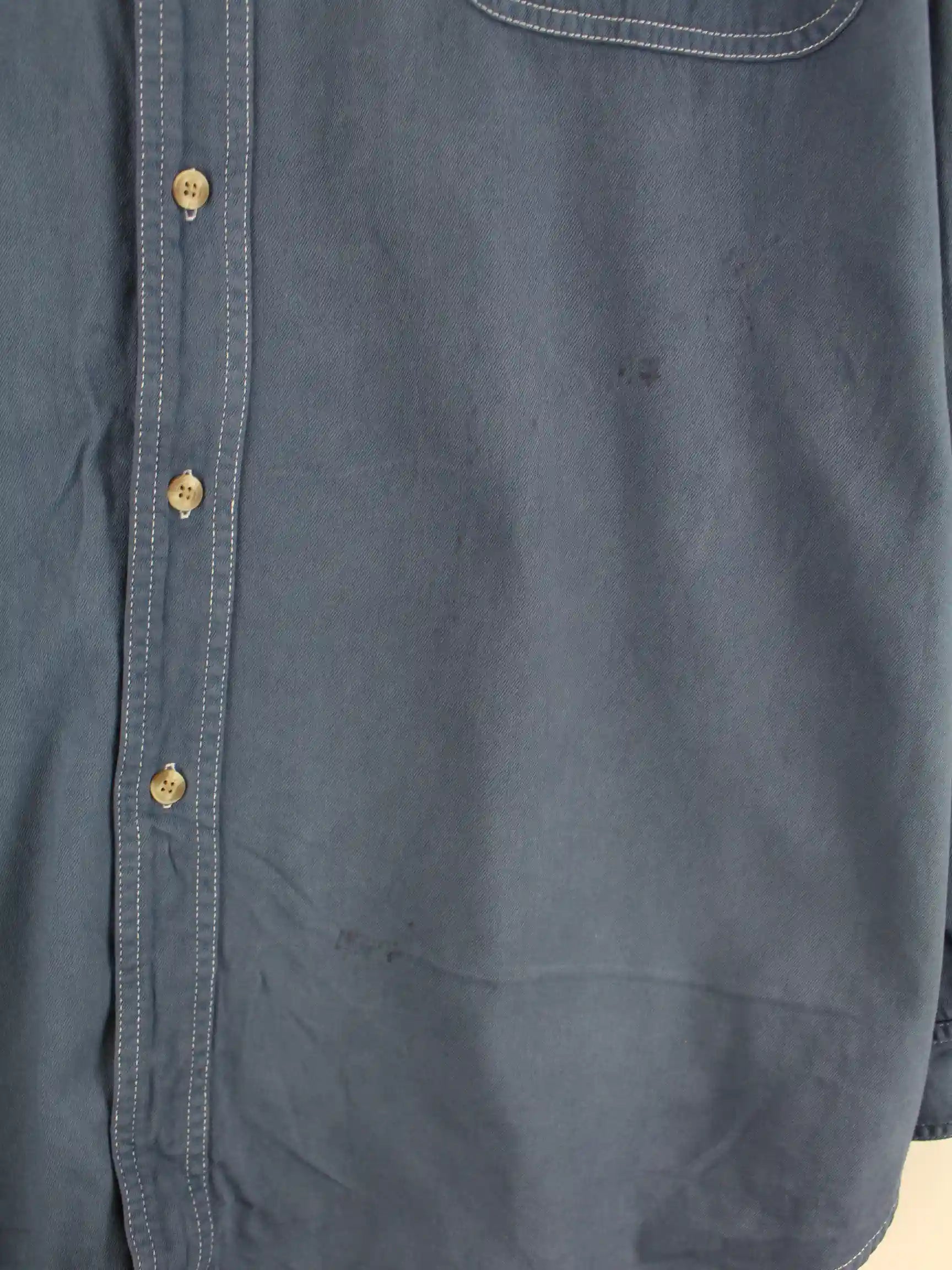 Blaues Freizeit Hemd von Lee aus den 90'ern in Größe XXL. Es ist aus Baumwolle gefertigt. Den Zustand würden wir als 'In Ordnung' bezeichnen (vergl. Bilder).