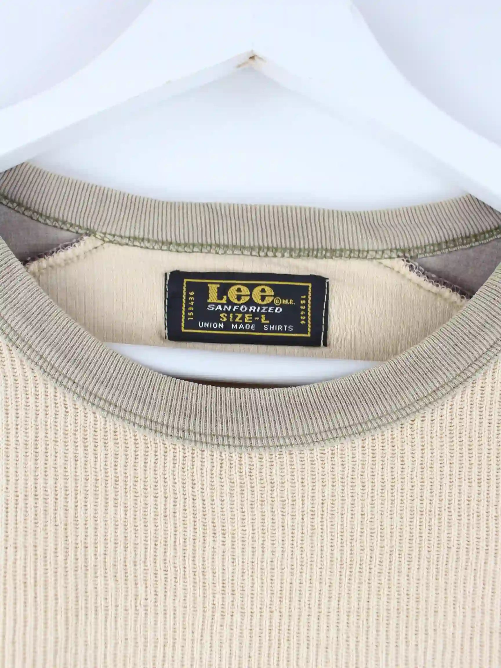 Sweater aus dem Hause Lee in Größe L aus den 90'ern. Er ist aus einer Baumwollmischung gemacht und in Braun in Stock.