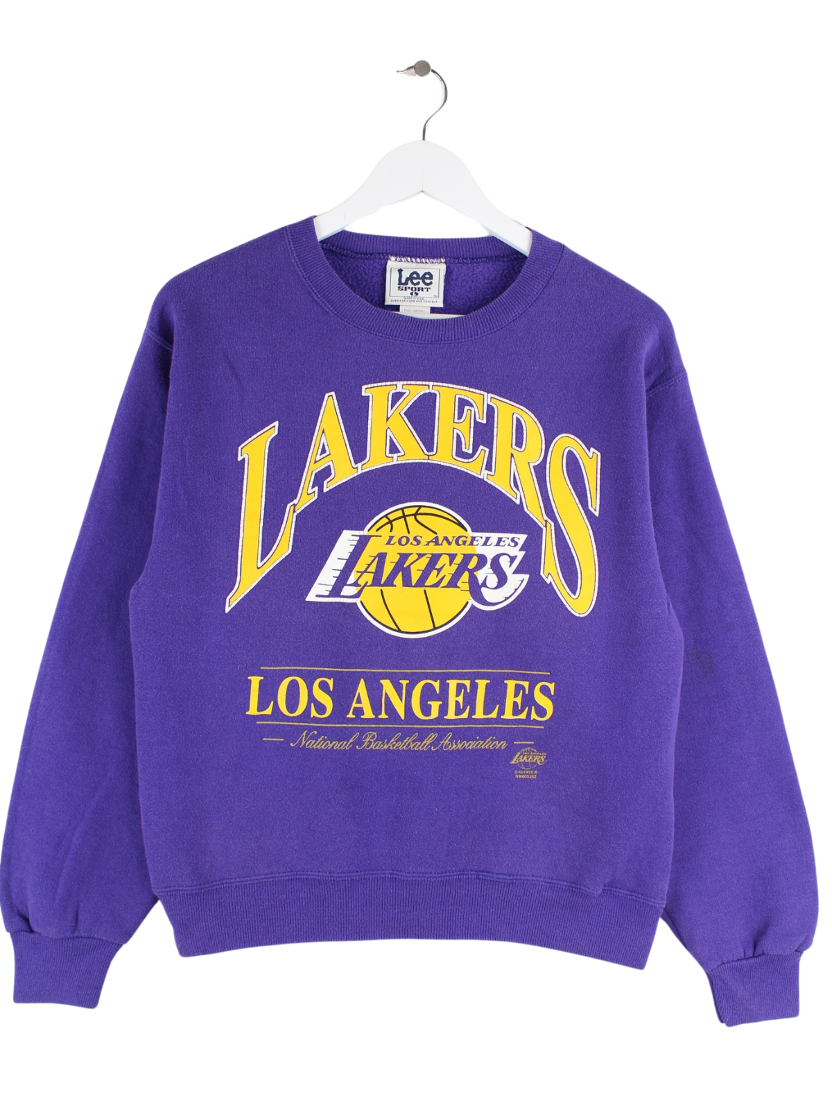 Blauer Sweater von Lee aus den 90'ern in Größe S. Er ist aus einer Baumwollmischung hergestellt und in gutem Zustand im Bestand. Mit seltenem Lakers Print.