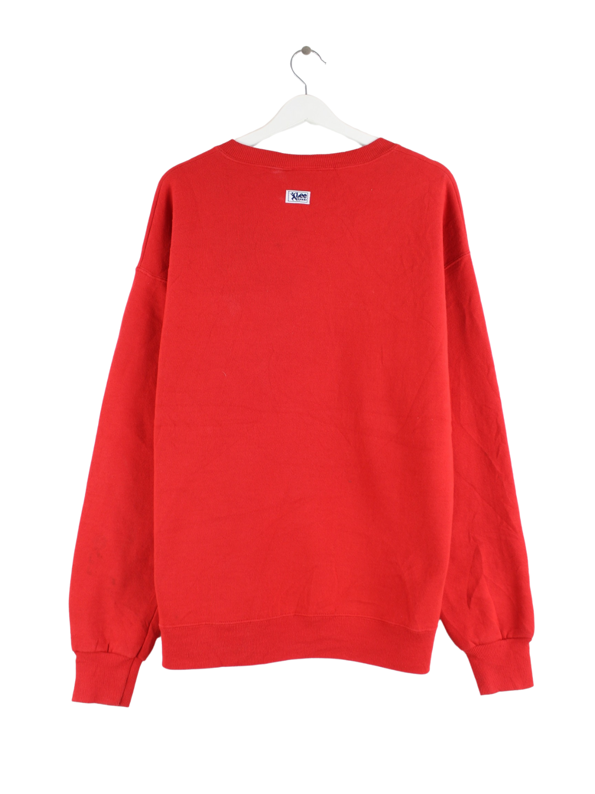 Roter Sweater mit Stick von Lee aus den 90'ern in Größe L. Er ist aus einer Baumwollmischung gefertigt. Den Zustand würden wir als 'In Ordnung' bezeichnen (vergl. Bilder).