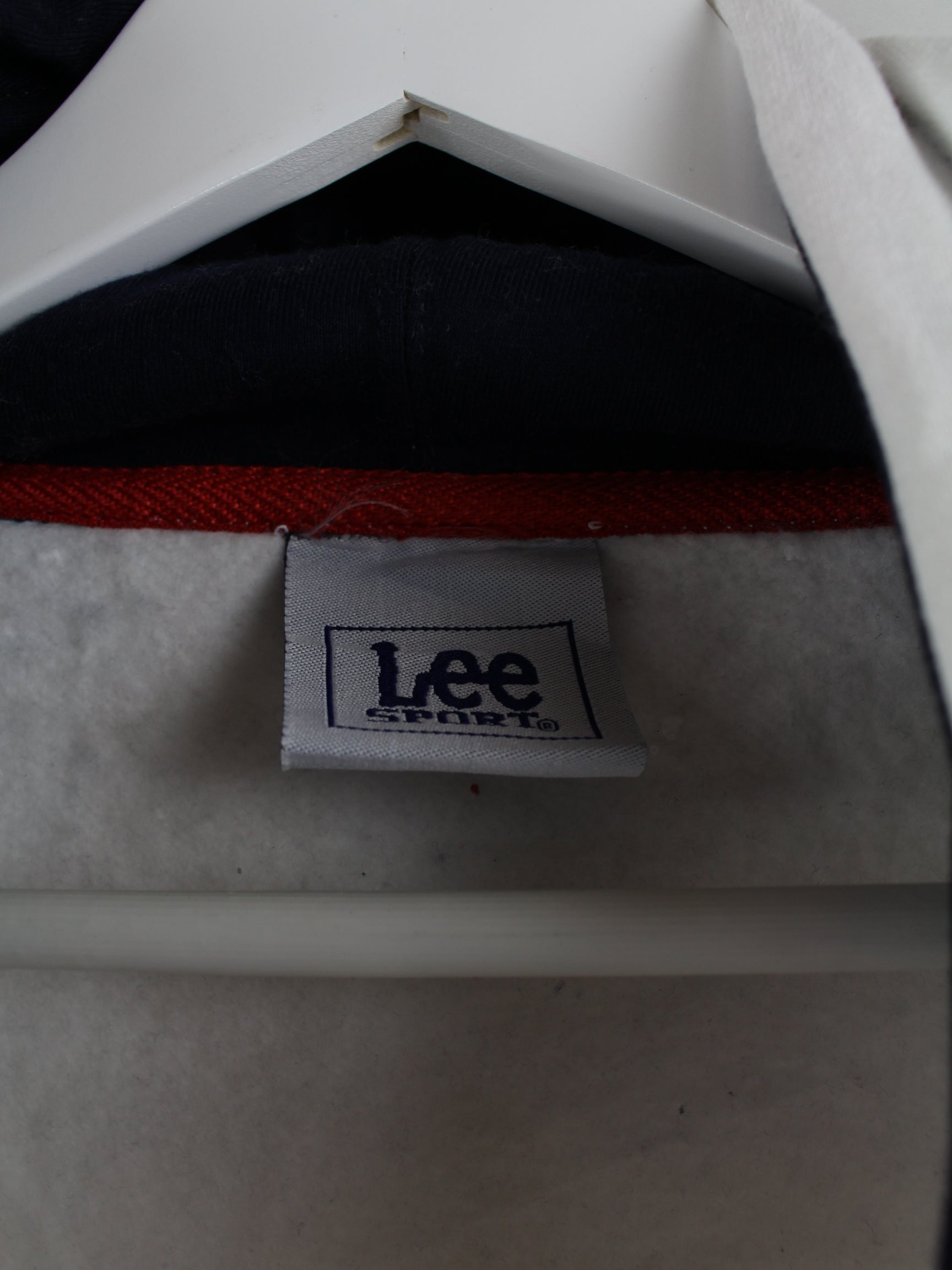 Weißer Hoodie mit gesticktem Logo aus dem Hause Lee in Größe XXL. Er ist aus einer Baumwollmischung angefertigt und in sehr gutem Zustand vorrätig.