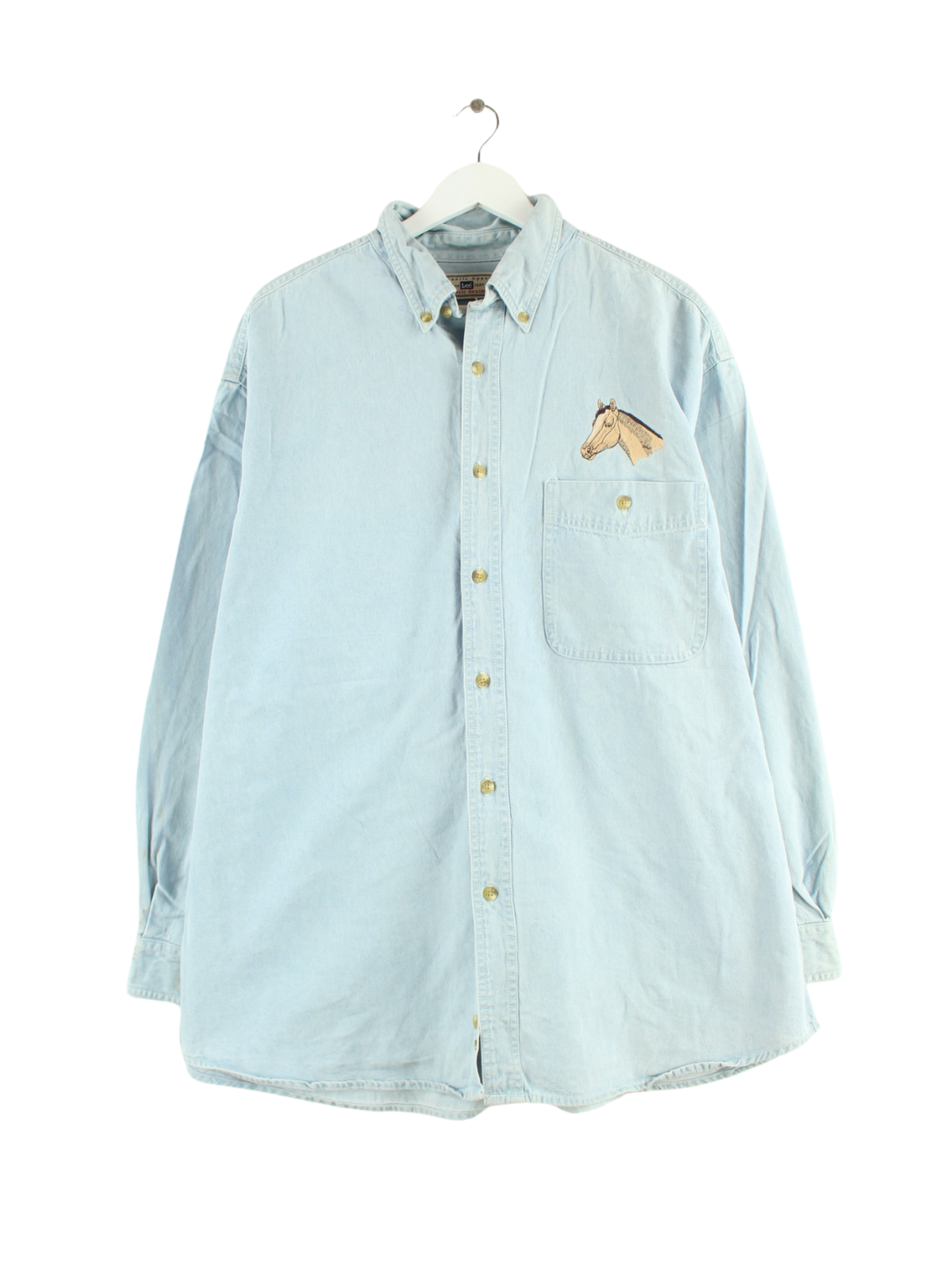Freizeit Hemd der Marke Lee mit Stick in Größe XXL aus Anfang der 2000'er. Es ist aus Baumwolle gemacht und in Blau bei uns zu bekommen.