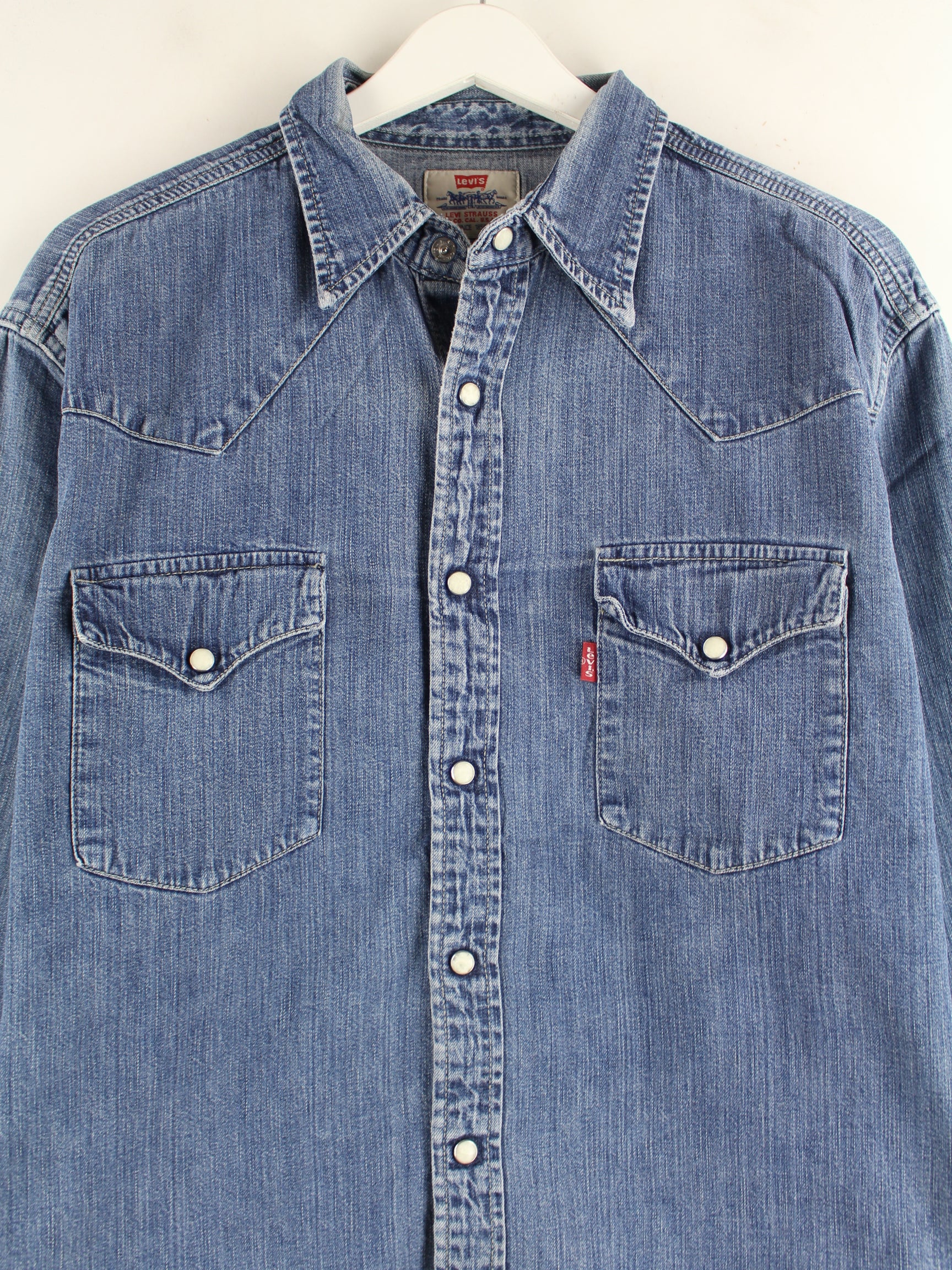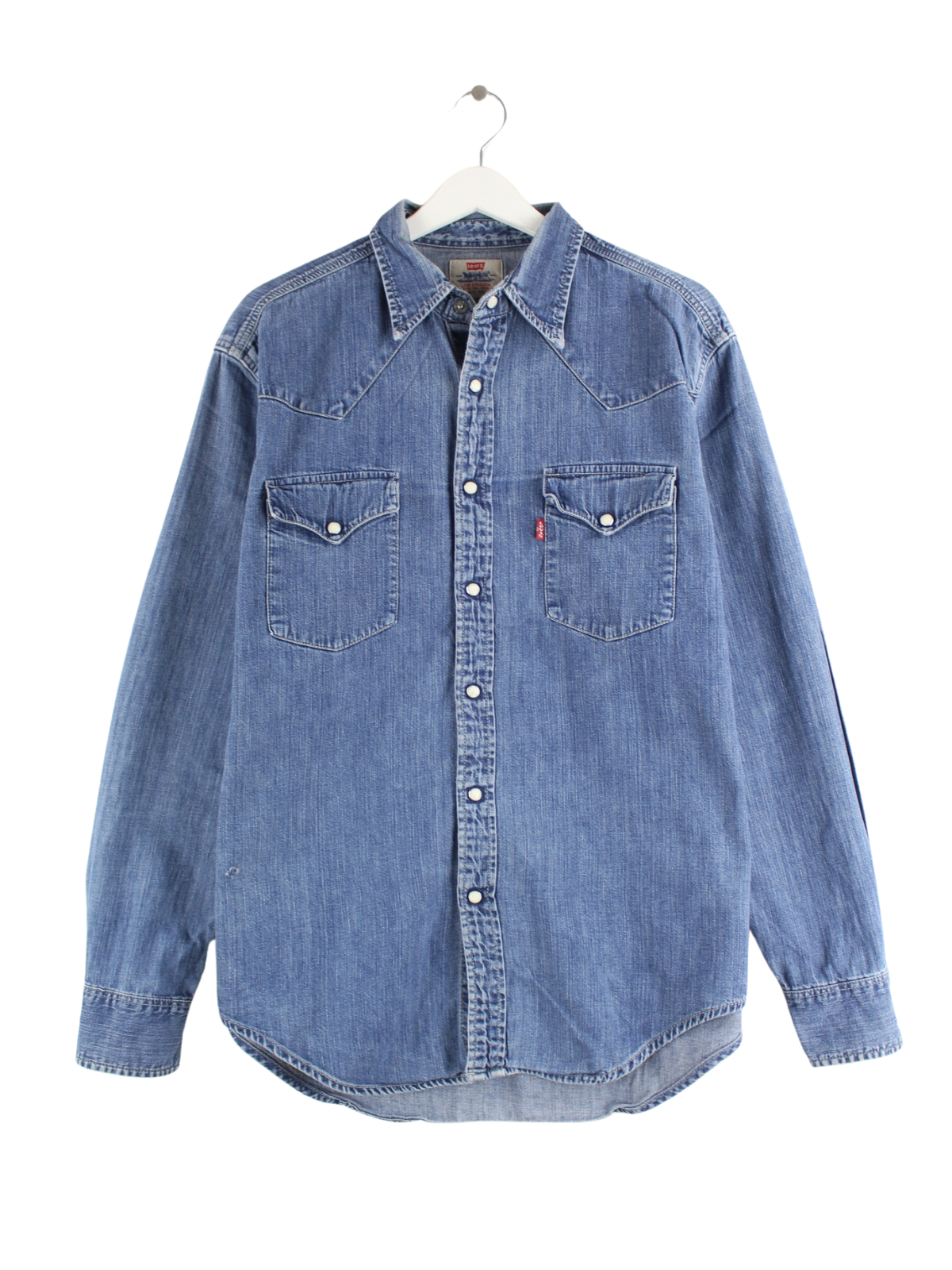 Blaues Freizeit Hemd des Labels Levi's in Größe L. Es ist aus Baumwolle . Den Zustand würden wir als 'In Ordnung' bezeichnen (vergl. Bilder).